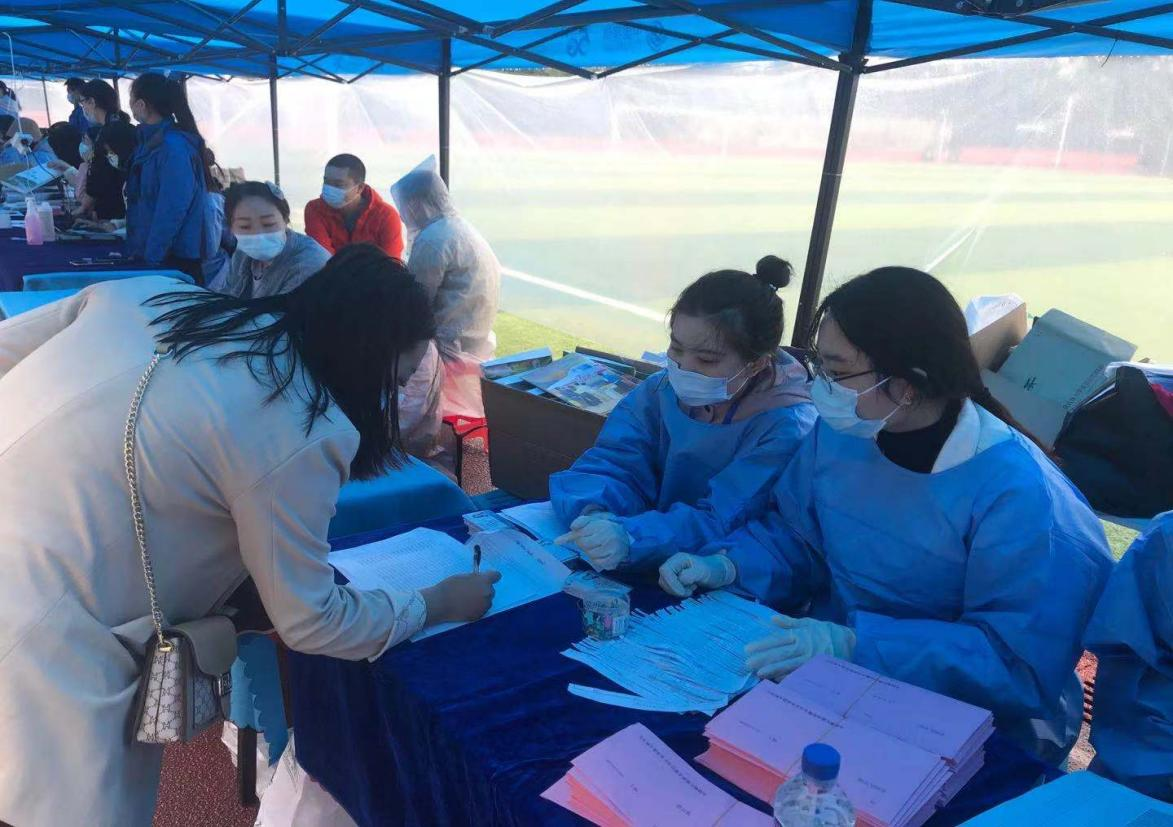 党委书记王晓荣、副院长李洪岩、党委副书记曹国丽、研办主任丁红枫在迎新现场热情地为新生解答问题,同时向前来报到的新同学送上关怀,并且叮嘱同学们注意做好个人防护,迎接崭新的校园生活。