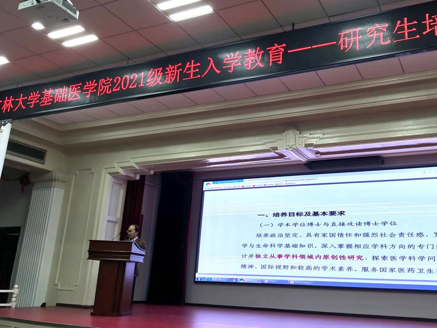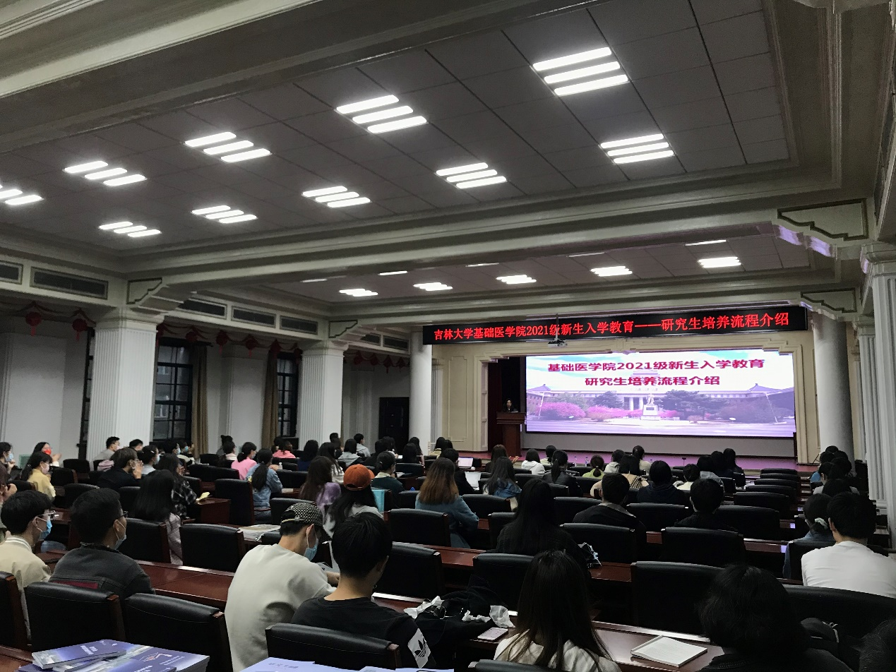 副院长李洪岩、综合办公室主任丁红枫主讲,学院研究生工作团队及2021级全体新生参加了会议。会议同时进行线上直播。