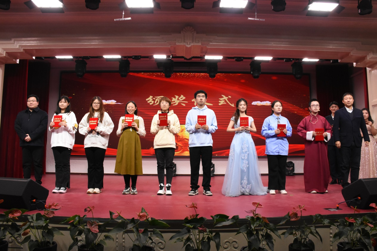 学生就业创业指导与服务中心副主任贾晓辉为2023年度研究生完美奖学金助学金获得者颁发荣誉证书。