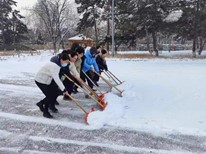 师生们的出行安全,许多同学积极响应号召,带上除雪工具,穿好保暖衣物,戴好手套,相约到基础楼下除雪。