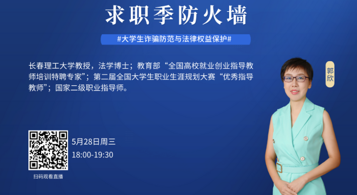 于2025年5月28日精心组织全体研究生同学,在线观看了由吉林省教育厅等部门联合主办的“2025年服务吉林高质量发展高校大学生就业创业系列直播课”——“求职季防火墙:大学生诈骗防范与法律权益保护”。本次课程特邀长春理工大学知名法学专家、法学博士郭欣教授倾情主讲,为即将步入社会的毕业生带来一场及时、权威、实用的安全防护指南。