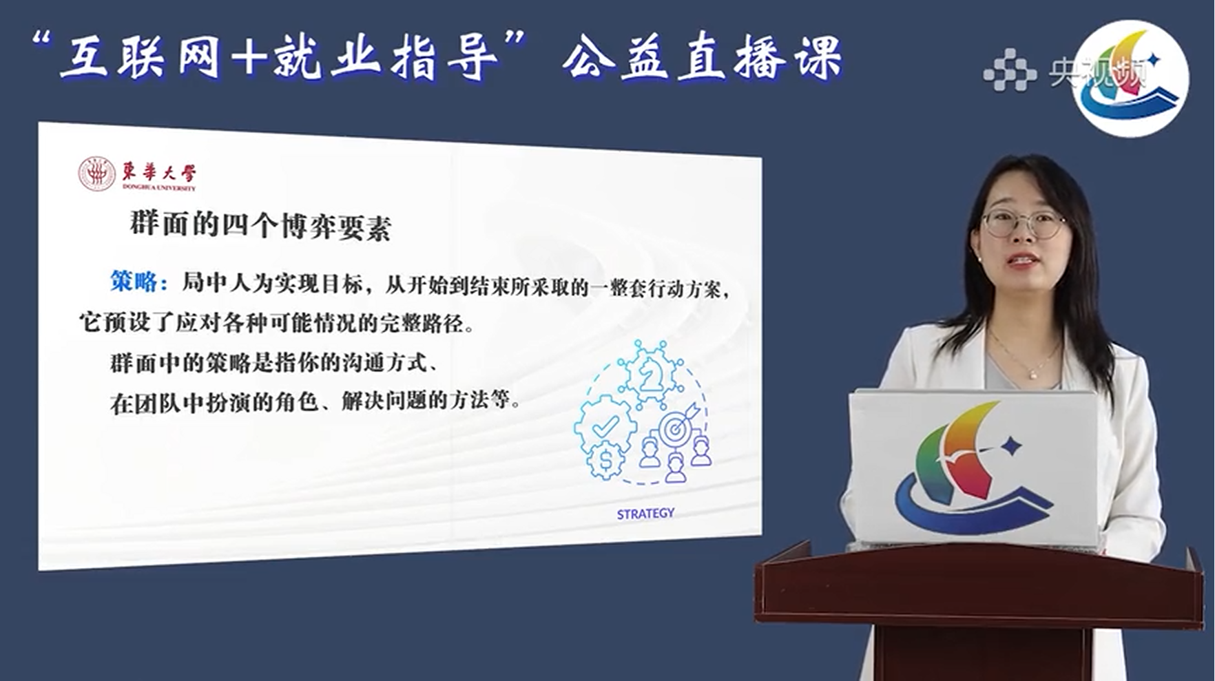 本次公益直播课特邀东华大学学生就业服务中心生涯咨询师纪静老师担任主讲,围绕当前用人单位广泛采用的群体面试(无领导小组讨论)形式,系统讲授其底层逻辑与核心评价维度,深入解析求职者在群体面试中的角色定位、行为策略与流程协作方式。课程内容紧贴实际、针对性强,对提升学生面试应对能力具有重要指导意义。