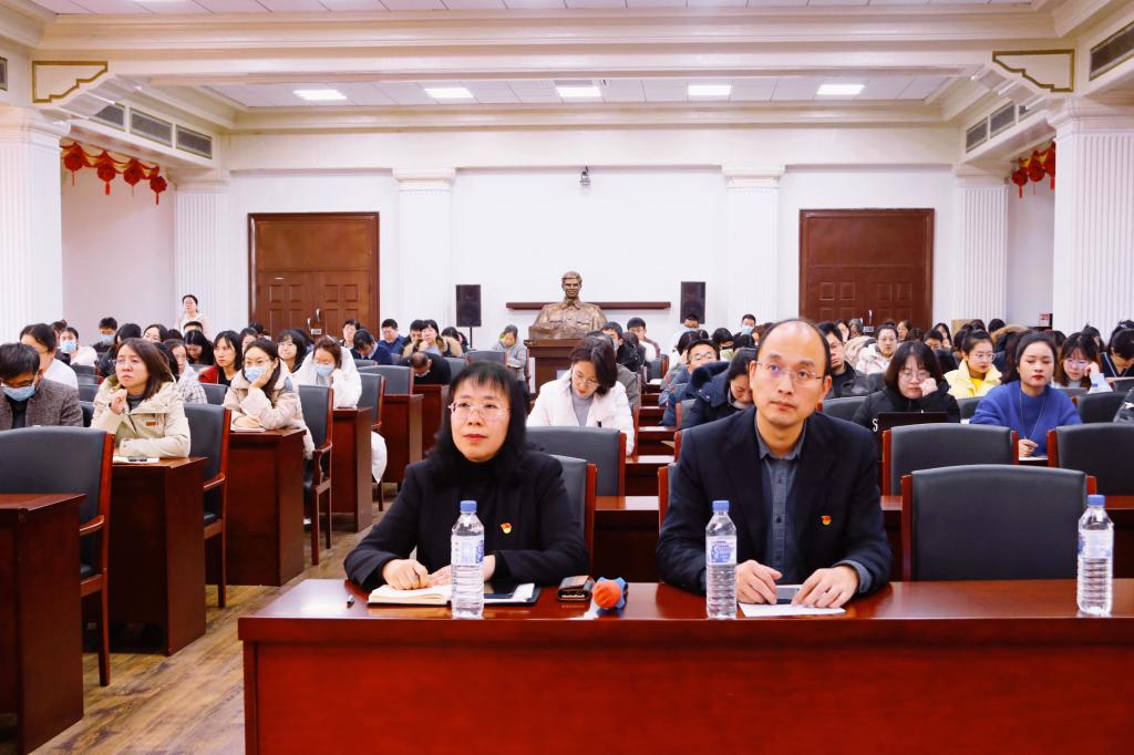 考古学院副院长、博士生导师段天璟教授为学院做了一场题为“坚持中国道路,传承中华文明,坚定文化自信,开创美好未来”的专题党课。报告会由学院党委书记王晓荣主持,学院领导班子成员、中层干部及师生党员共计一百余人参加了本次党课学习。