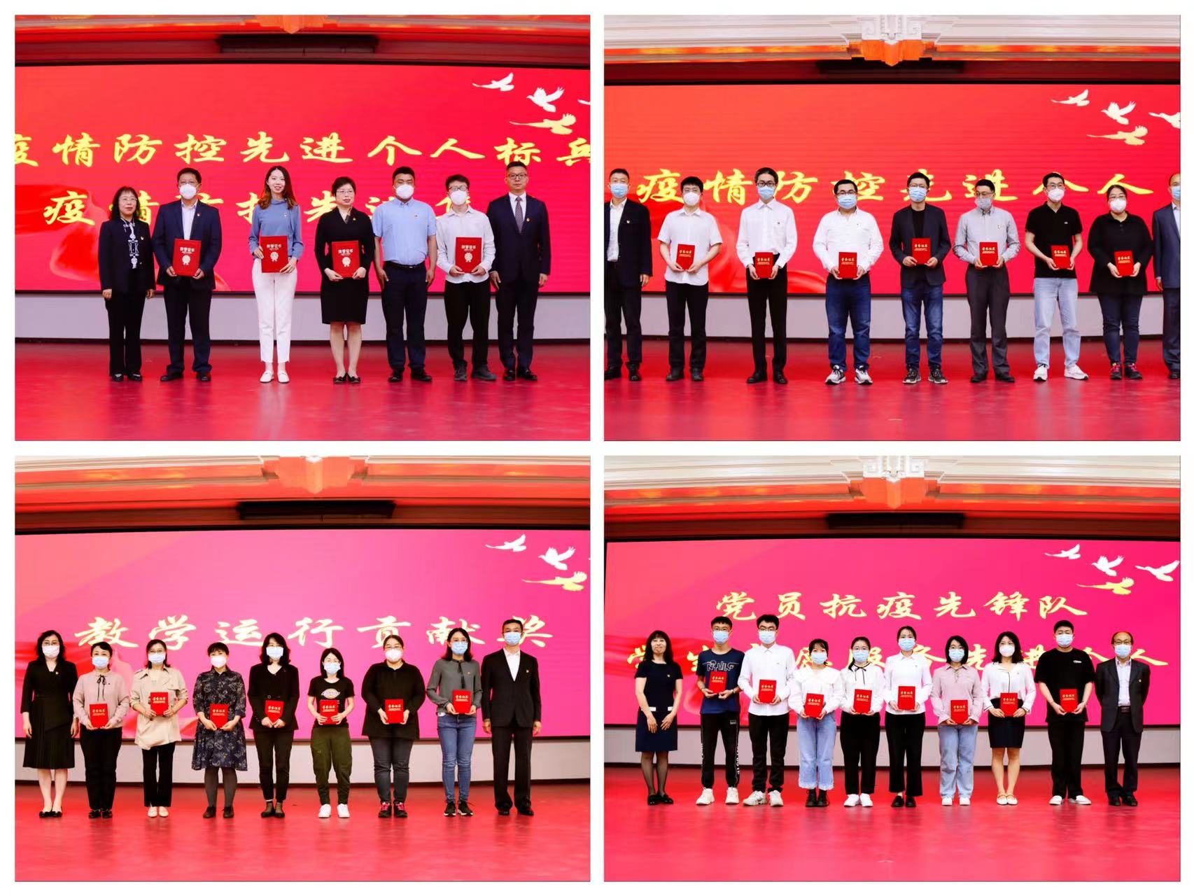 李洪岩副院长宣读了学院的表彰决定,学院班子成员依次为学院疫情防控工作先进个人标兵、先进集体、驻校工作的先进个人代表、教学运行贡献奖代表、学生党员抗疫先锋队、学生志愿服务先进个人颁奖。