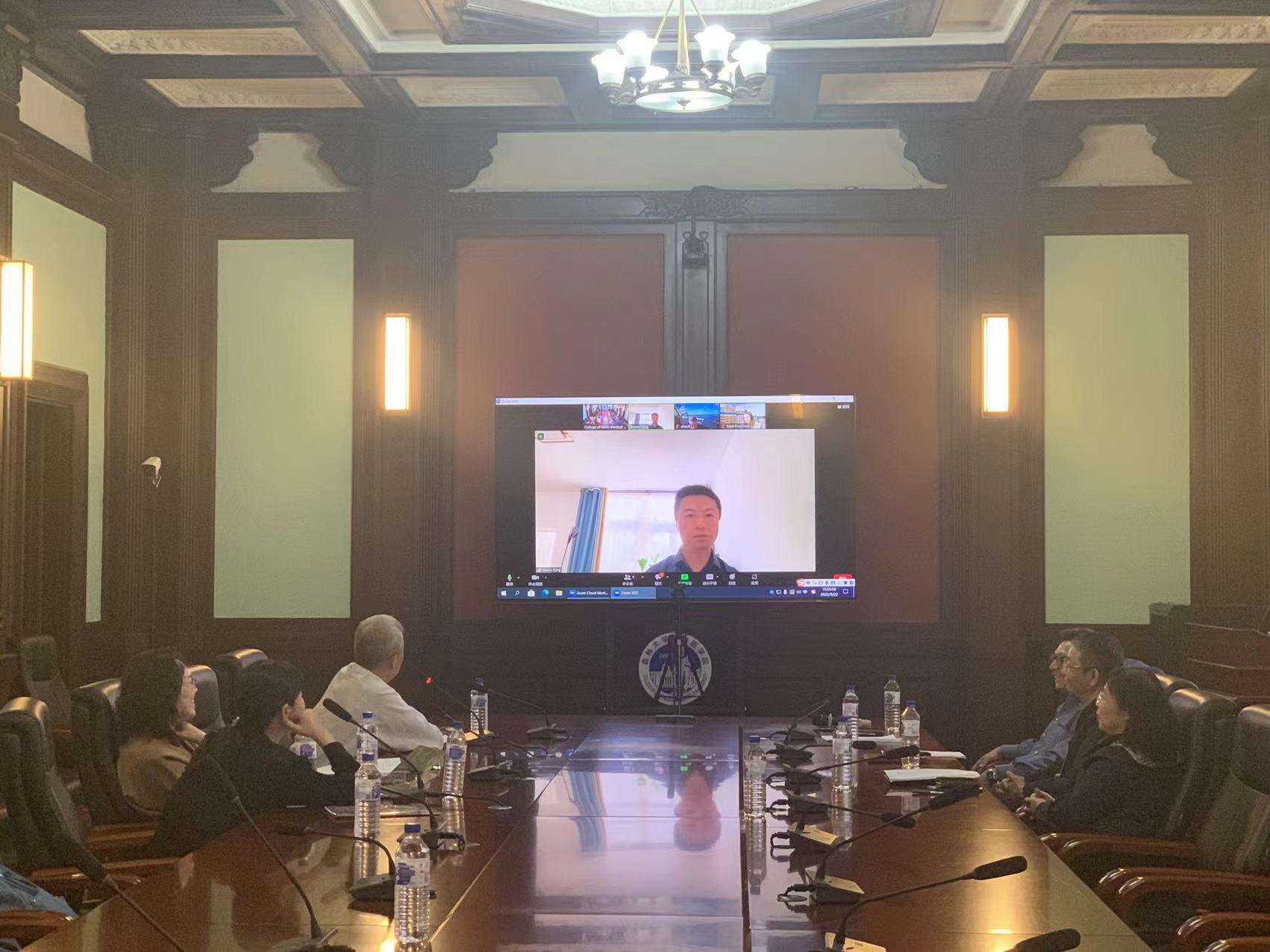 院长王放、党委书记王晓荣、副院长刘海岩、副院长辛颖、生物医学科学系主任张灵、病原生物学系外籍教授杨青等共同在“云端”就双方合作意向进行了磋商。