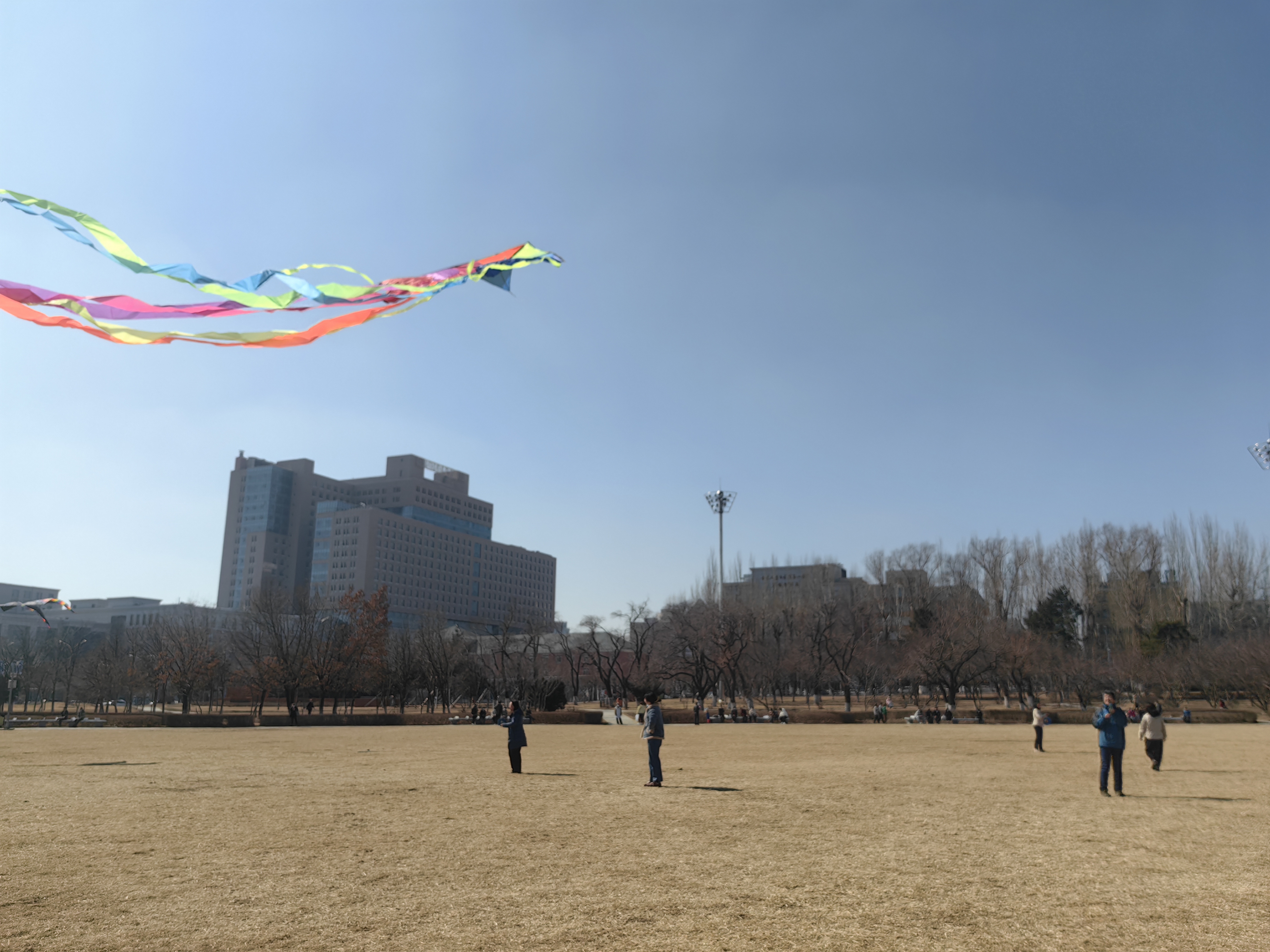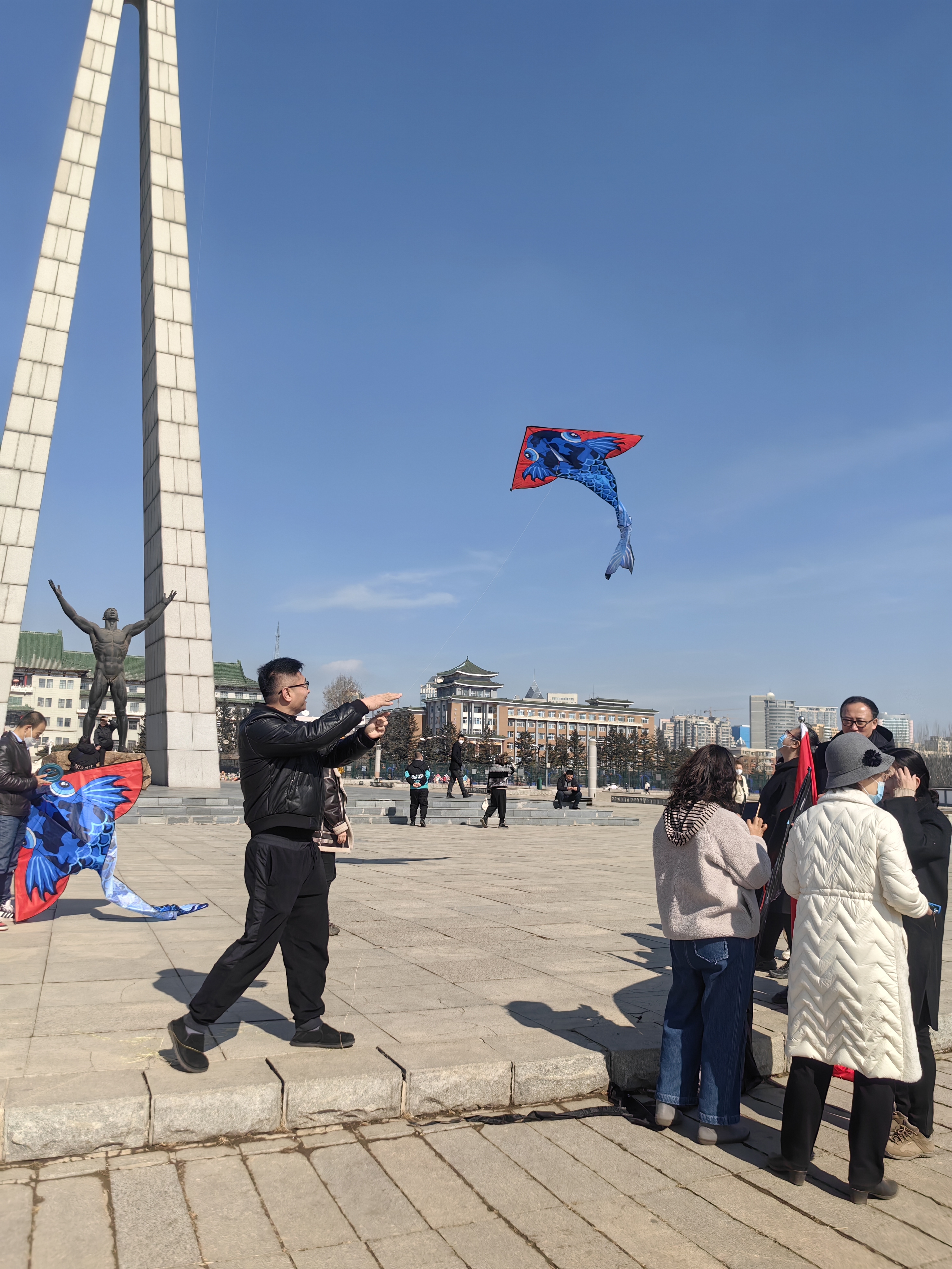 在春意盎然的文化广场上,学院的女教职工们褪去了工作时的严谨形象,脸上洋溢着热情、活力与朝气,各式各样、色彩纷飞的风筝满载着教职工们的希望与快乐在天空中自由翱翔。