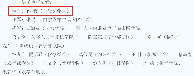 比赛分为男子单打、女子单打、混合团体三项。其中,我院孙巍教授获得男子单打冠军。