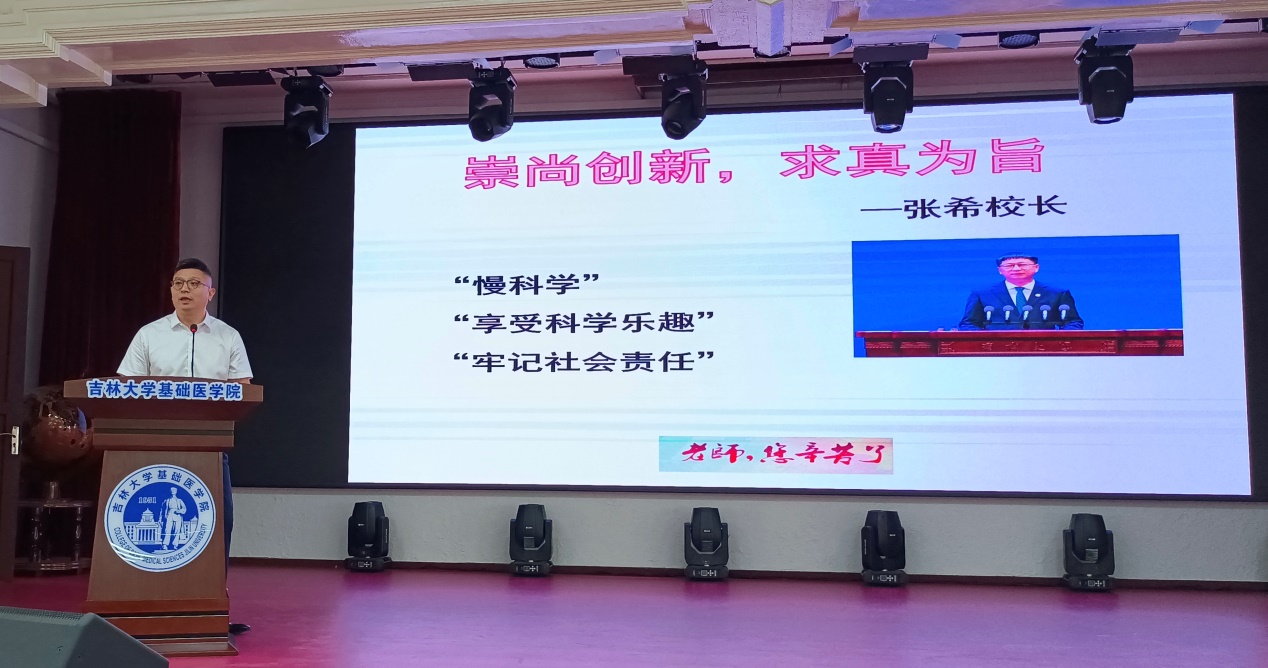 大会在雄壮的国歌声中拉开帷幕。李洪岩副院长宣读了《关于表彰2022—2023年度优秀教师、优秀教师团队等的决定》。学院决定授予李玉林、于永利、李凡、孙连坤、陈霞5名教师“特殊贡献奖”;李一雷、王放2名教师“师德先进个人”荣誉称号;全成实等60名教师“优秀教师”荣誉称号;病理学系、组织学与胚胎学系2个团队“优秀教师团队”荣誉称号;赵航、王博2名教师“管理辅助先进个人”荣誉称号;李平亚、陈维佳2人“特别感谢奖”。