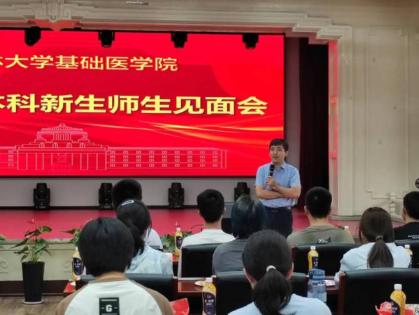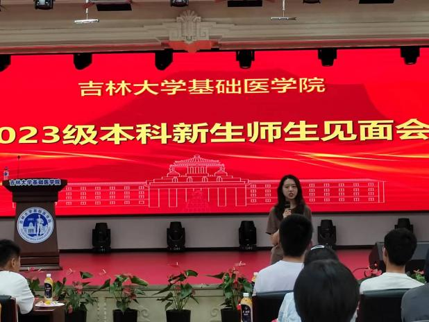 随后,团委书记孙佳钰老师介绍了学院团委和学生会的组建和构成情况,鼓励同学们积极参加学院各类文体活动和社会实践活动,积极投入到校园文化建设中。生物医学科学专业2023级一班班主任辛卓远、二班班主任闫天昊分别从各自专业背景,给予大一同学们大学学习生涯规划建议,引导大家了解生物医学科学专业发展方向和前沿领域,并介绍了指导学生开展科研项目和参加全国竞赛的情况,进一步激发同学们对科研的兴趣和参与学科竞赛的向往。作为学生朋辈力量的代表,研究生兼职辅导员吕欣妍和本科生辅导员助理陈治利、刘天琪三位同学分别介绍了自己在学院的学习生活经验和学生干部工作经历,分享了自己参与学院迎新工作,为学生们提供志愿服务的感悟,同时表达了对学弟学妹们暖心的关怀和未来的期待。