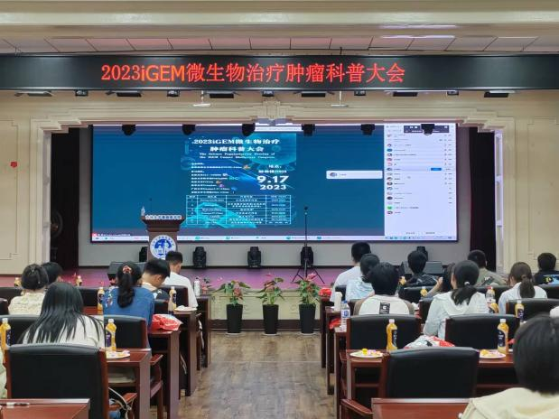 为了增进各高校iGEM团队之间的交流,普及合成生物学的知识与方法。9月17日晚,2023iGEM微生物治疗肿瘤科普大会以线下线上相结合的方式召开。来自全国各地的6支iGEM团队参加了会议,其中SexAV