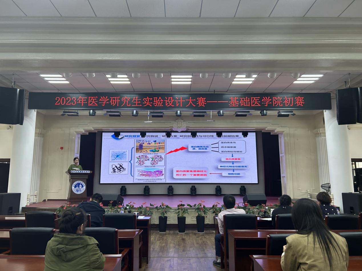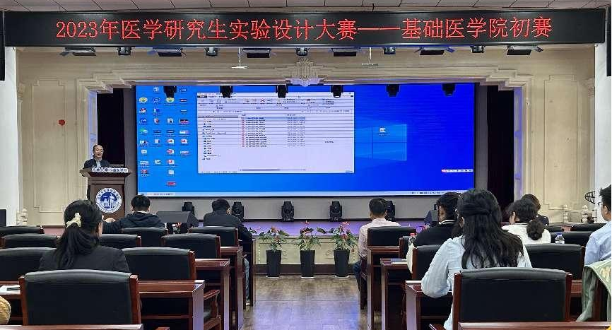 白求恩医学部2023年医学研究生实验设计大赛”的通知要求,我院于2023年10月13日在二楼报告厅举办了“2023年医学研究生实验设计大赛初赛”,邀请我院池光范教授、黄红兰教授、李冬教授、何侃教授、张丹丹教授担任评委,比赛由学院副院长李洪岩教授主持。