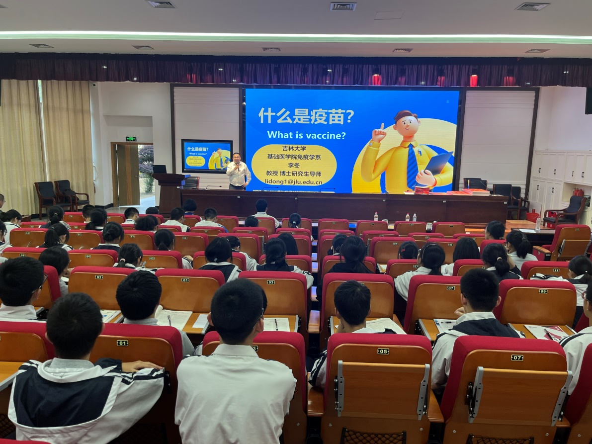 培养多名优秀生源表示感谢。李冬教授以《什么是疫苗》为题,为三所中学的同学们开展了三场科普讲座。李冬教授带来的精彩演讲不仅突出知识性、科学性和通俗性,更强调趣味性和新颖性。他以浅显、幽默的语言,讲授深奥的现代生物技术知识,介绍最新的疫苗研究成果和未来发展趋势,营造了浓厚的科普活动氛围。讲座后,李冬教授以《筑梦启航在吉大》为题对SexAV