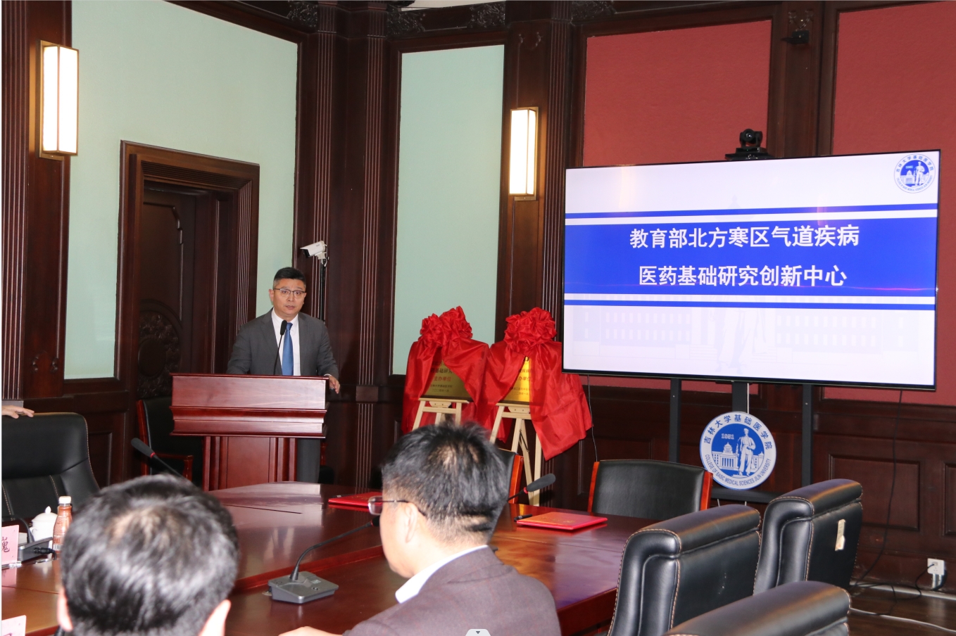 王放院长对“教育部北方寒区气道疾病医药基础研究创新中心”的实验平台基础、主要研究方向和解决问题以及团队成员和合作单位等方面做了介绍。他表示,“创新中心”立足东北,连线华南和北京的北方寒区气道疾病,形成基础、药物和临床诊治一体化特色研究中心,辐射全国的医药基础研究创新的高地。