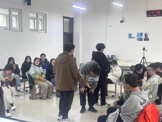 活动的班会阶段,总共有三个小游戏,首先进行的是“传手令”活动,由第一位同学在组织者手中随机抽取一个成语,并用肢体语言阐述含义传递给下一位同学,直至最后一位同学正确的说出成语名称才算胜利。其次进行的是“看看谁最快”活动,要求参赛者以抢答的方式反述主持人所说内容,字数依次增加,坚持到最后的小组胜利。活动中,同学们由刚开始的“张不开嘴”到最后争先恐后的抢答,每个人都在迅速调整状态以适应新的挑战。在这两个小游戏中,同学们纷纷表现出自己独特的反应能力,尤其是对于刚刚加入SexAV