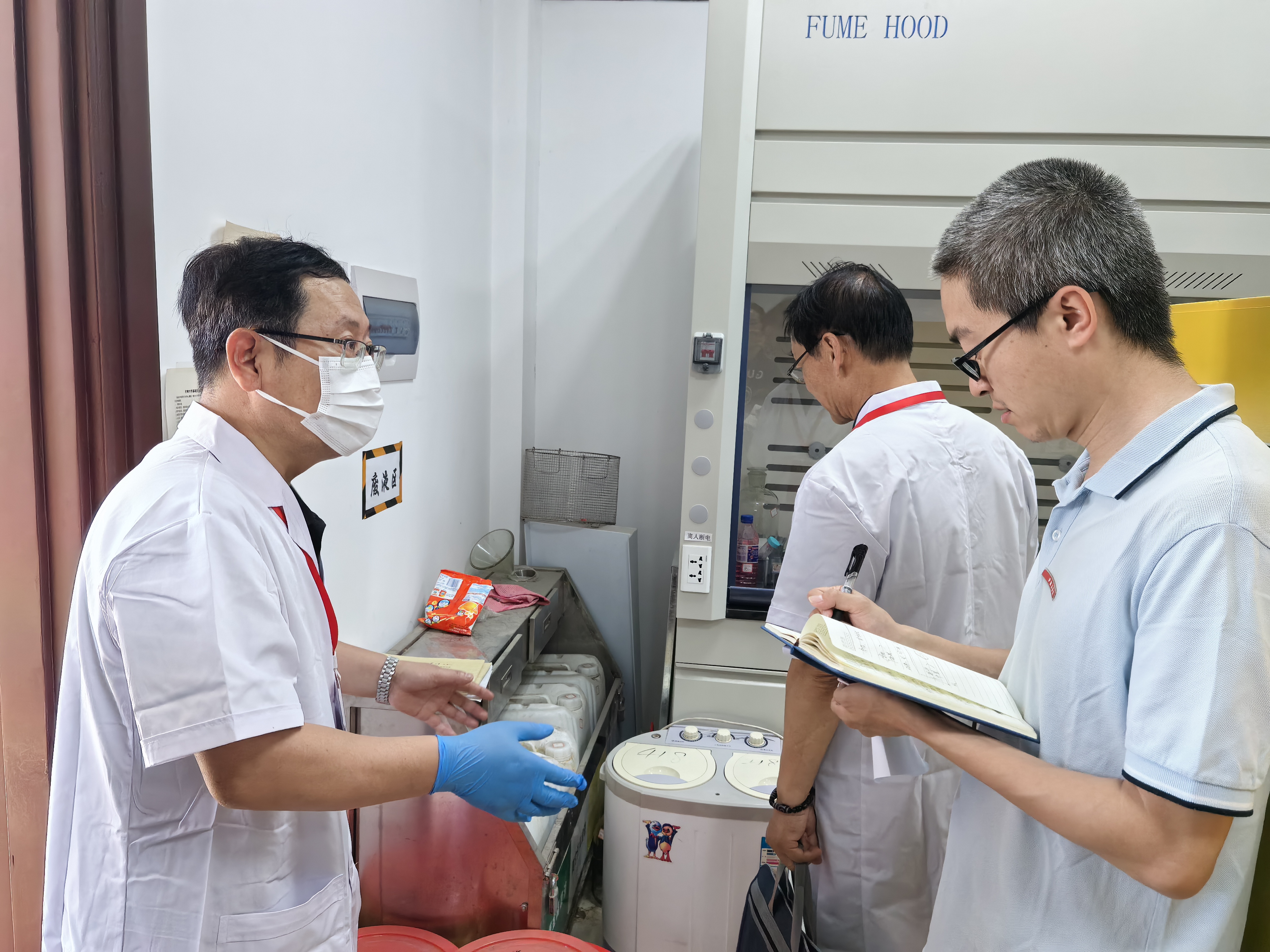 为进一步贯彻落实国家安委会、教育部、省教育厅以及学校安委会相关工作部署要求,切实做好我校实验室安全精细化管理工作,有效防范各类实验室安全事故,2024年6月19日上午,由实管处姜波科长带领专家组来我院对实验室生物安全、危险化学品进行安全检查工作。