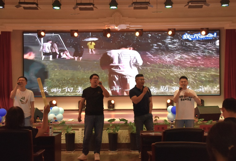 毕业晚会在李东洋、孙佳钰、何侃、闫天昊四位老师与基础学子携手录制的暖场MV《起风了》中缓缓拉开序幕。