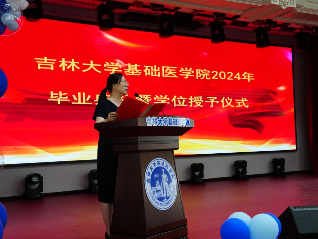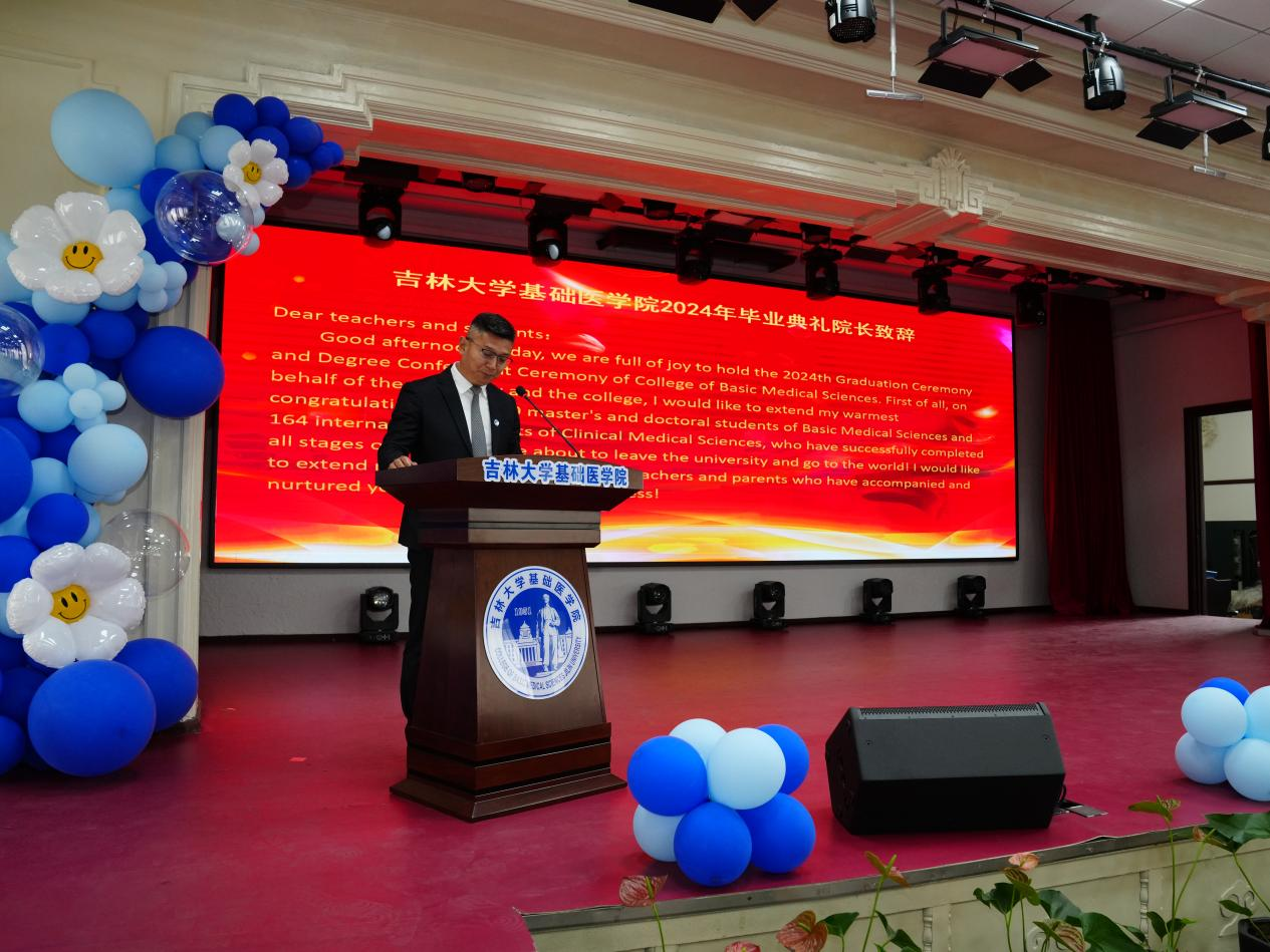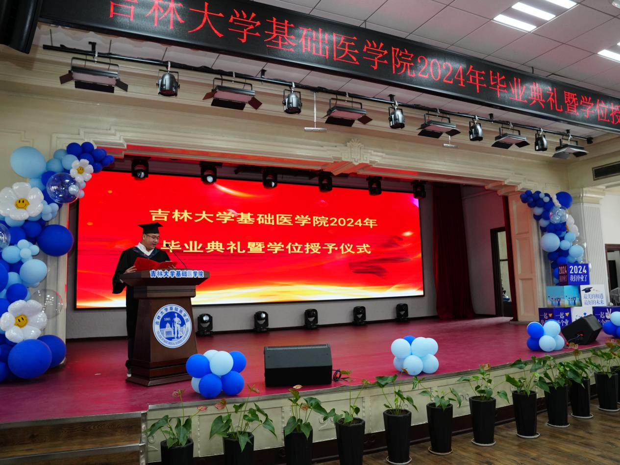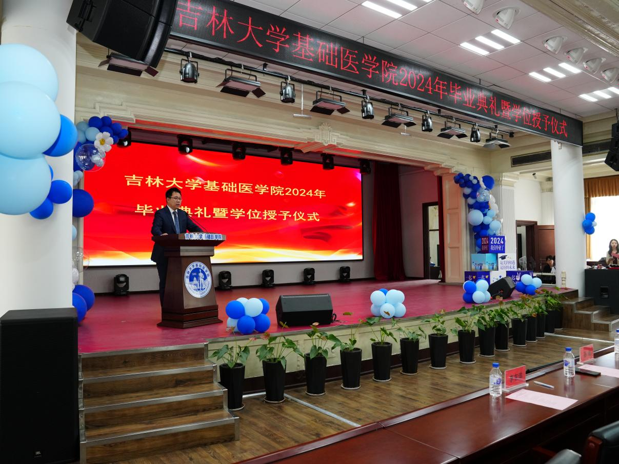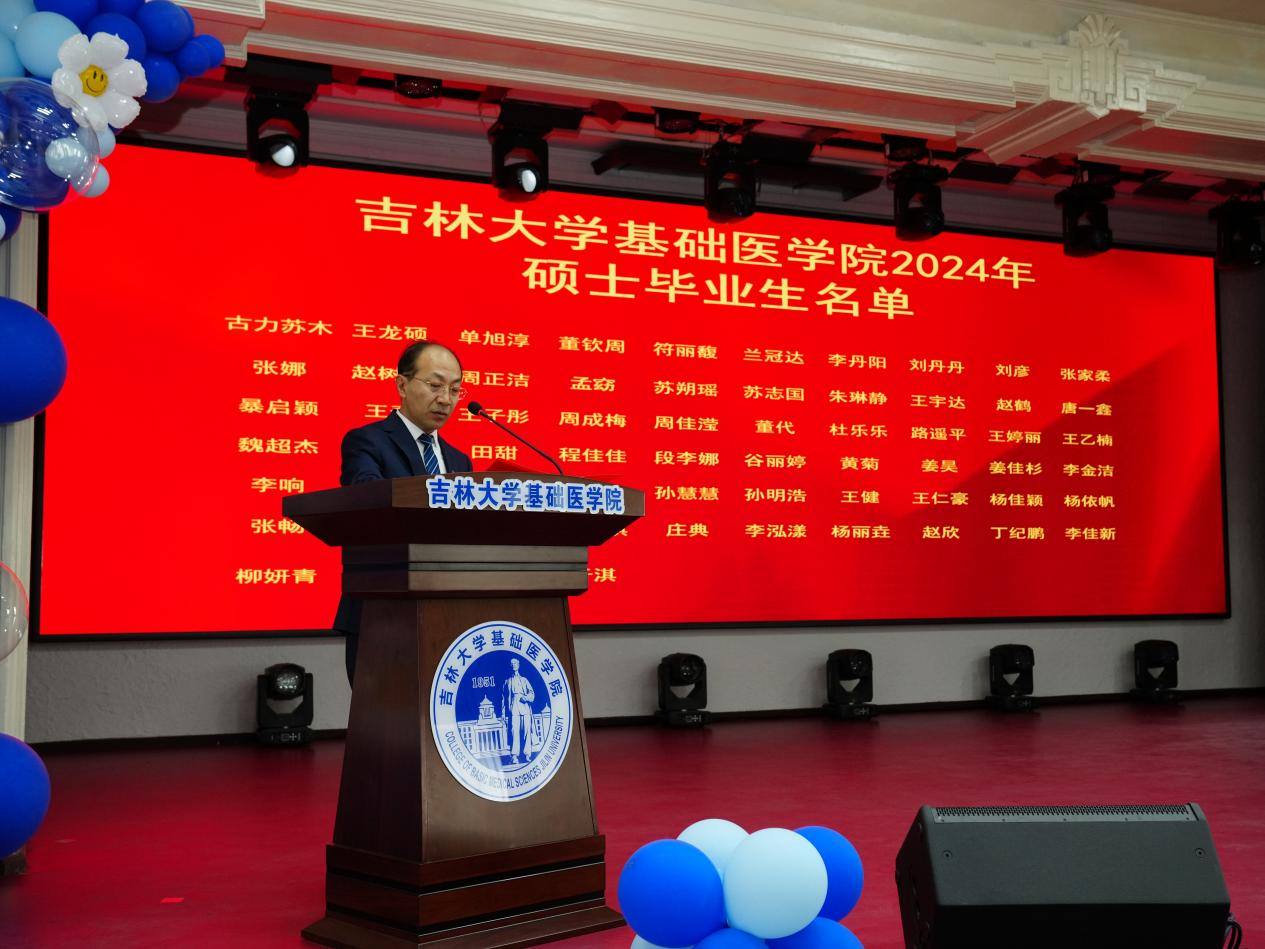 院长王放致辞,向顺利完成各阶段学业、即将告别母校、迈向人生新高度的毕业生致以最热烈的祝贺。大家一同见证了学院在医学教育创新发展中取得的成就,迎来了多个里程碑意义的“第一”,感谢毕业生把美好年华留在基础,把绚烂青春献给科学研究。殷切希望大家能永远做具备严谨科学态度和保持创新精神的基础人,以在基础所学,跨出校门、奔赴祖国大地,为人民健康伟大事业做出卓越贡献。