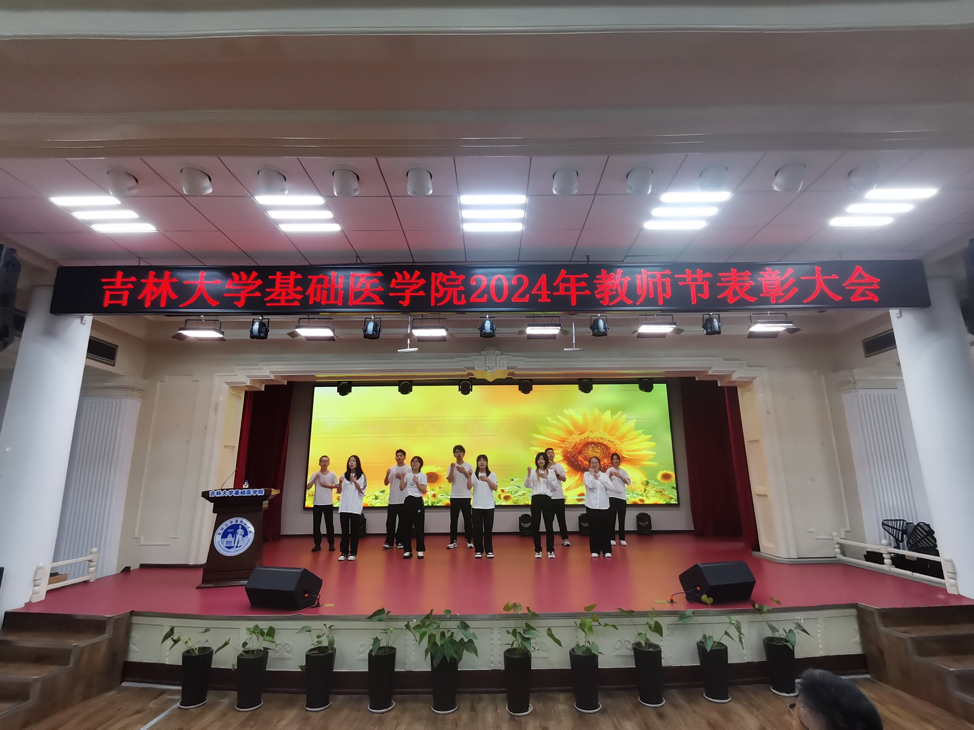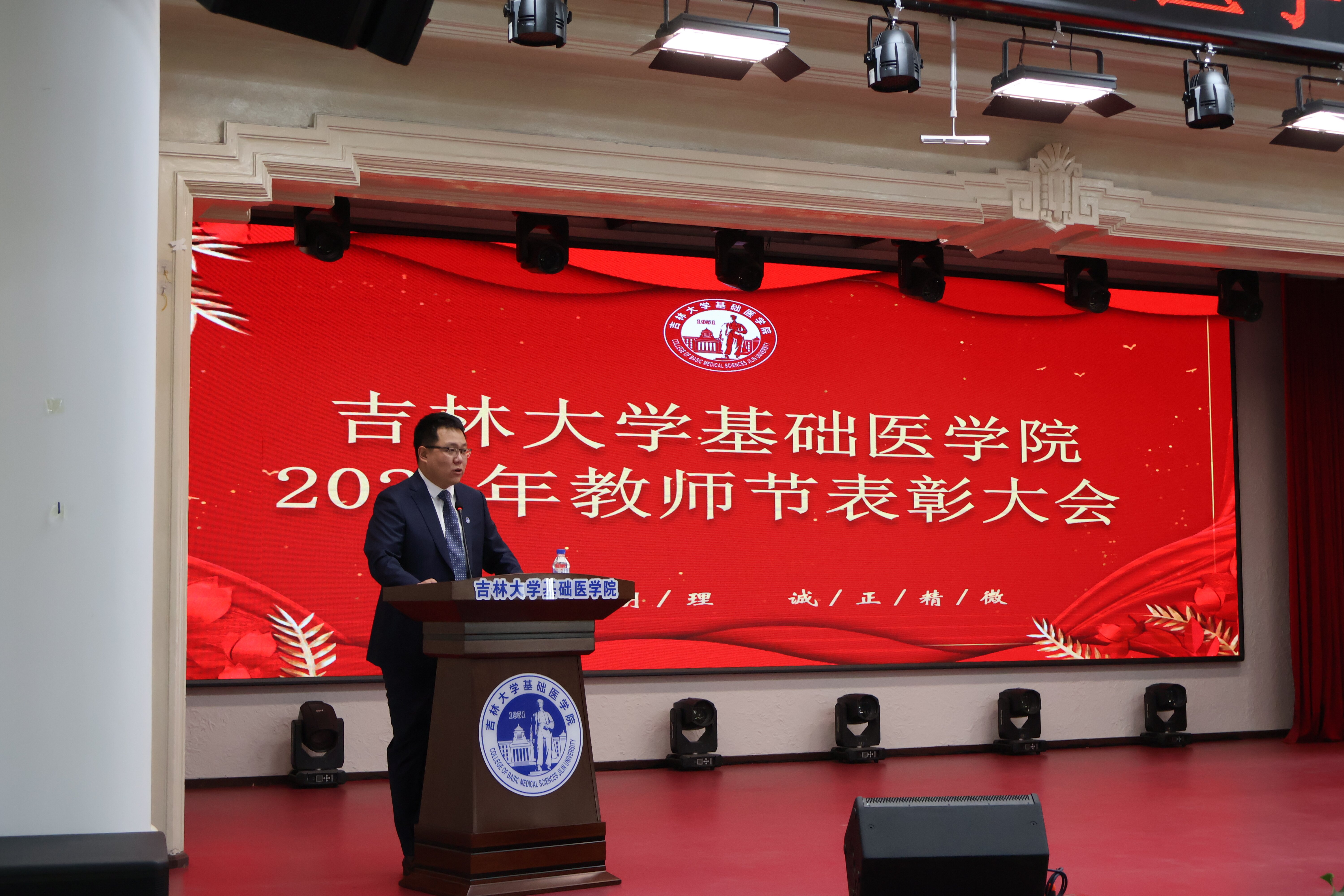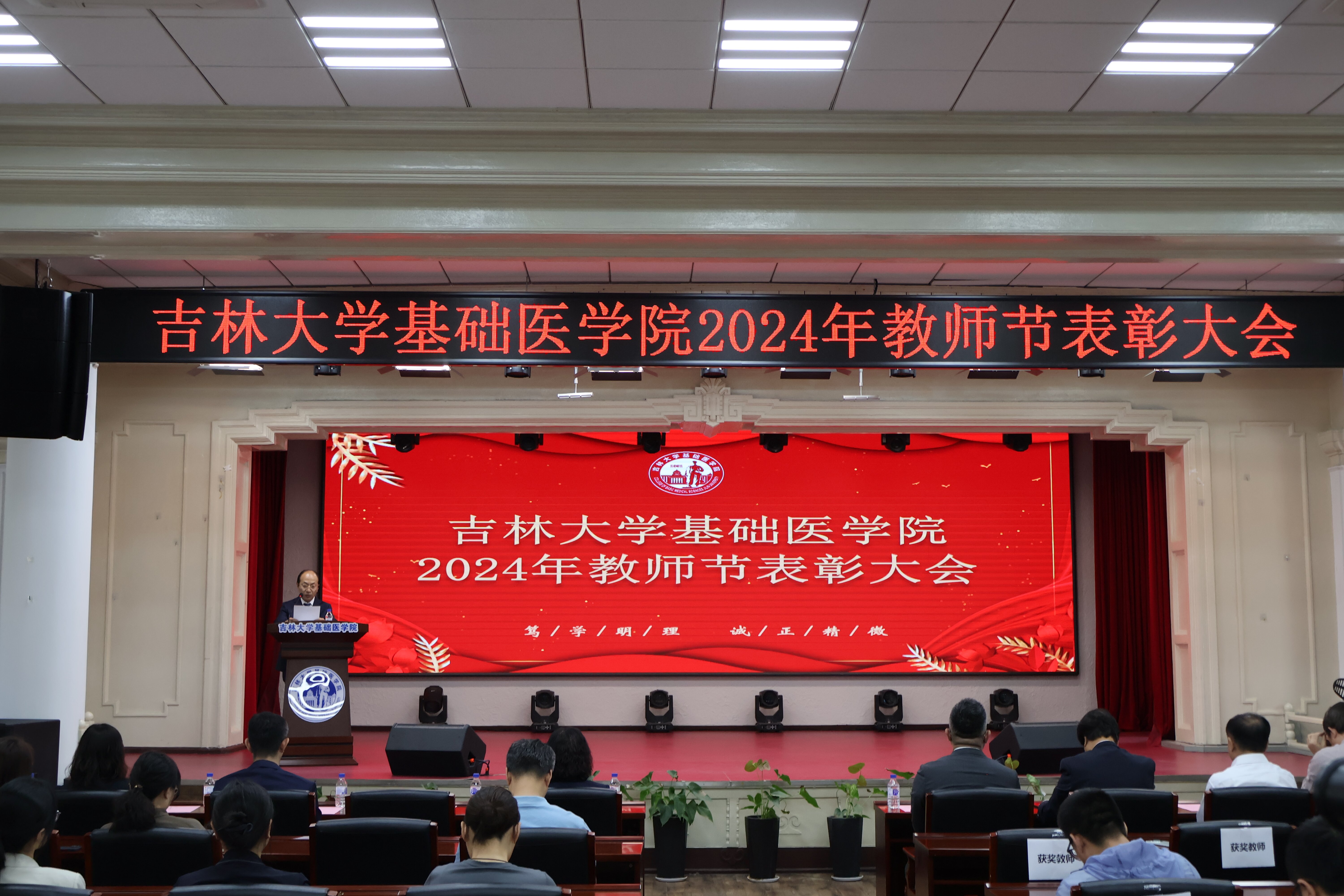 隆重召开2024年教师节表彰大会。基础医学院党政领导班子成员、各学系主任、师生代表等一百余人参加大会。会议由党委副书记兼副院长李东洋主持。