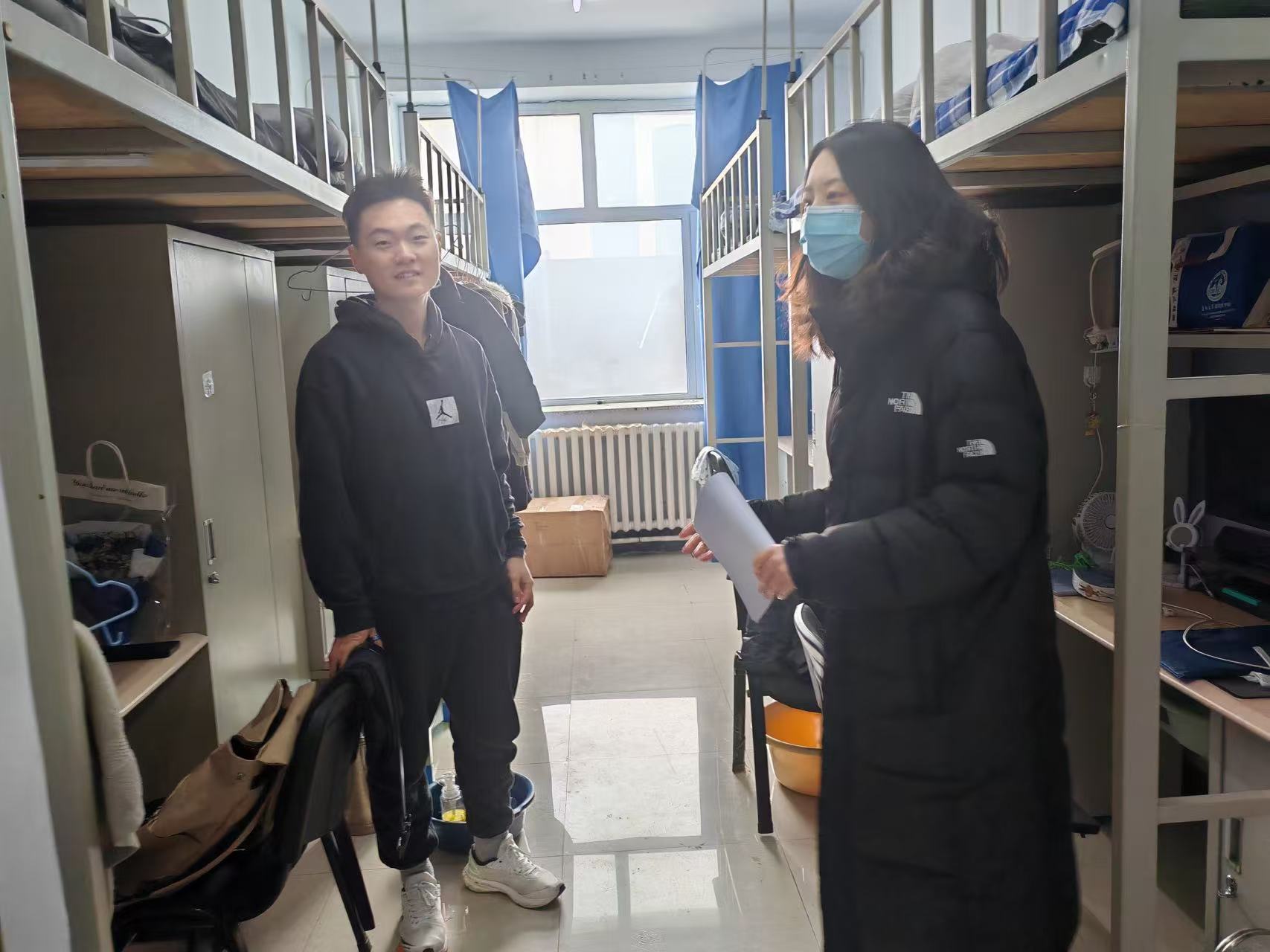 本次实验室检查包括实验室危化品出入库管理、使用情况,实验废弃物处置等情况,重点查看实验室消防安全情况。在宿舍检查中,工作人员重点排查违章电器使用情况、易燃物品存放、是否有使用明火以及人走断电情况。同时,研究生辅导员走访慰问了留校研究生,发放寒假安全手册,提醒学生在校期间注意事项,并详细询问每个人的返乡时间,认真倾听同学的实际需求,同时提醒同学们离开宿舍时务必断电断水、关门关窗,杜绝一切寝室消防安全隐患,在返乡途中注意人身财产安全。