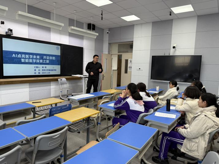 之后,招生宣传团队前往天津市南开中学开展宣讲会。杨明教授以AI点亮医学未来:“开启你的智能医学探索之旅”为题做科普讲座,并针对学生们提出的问题进行了耐心细致的解答。