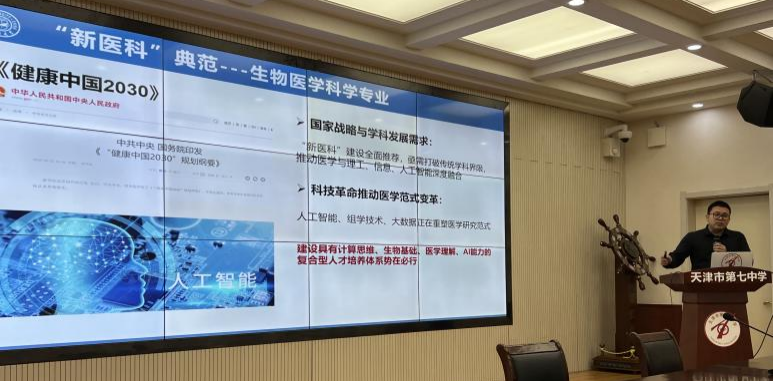 3月28日下午,学院招生宣传团队前往天津市第七中学,杨明教授针对当前AI领域的新发展,与传统医学学科相结合的新方向开展宣讲,并对我院生物医学科学专业的培养模式,就业方向等进行了着重介绍,现场座无虚席、气氛热烈。
