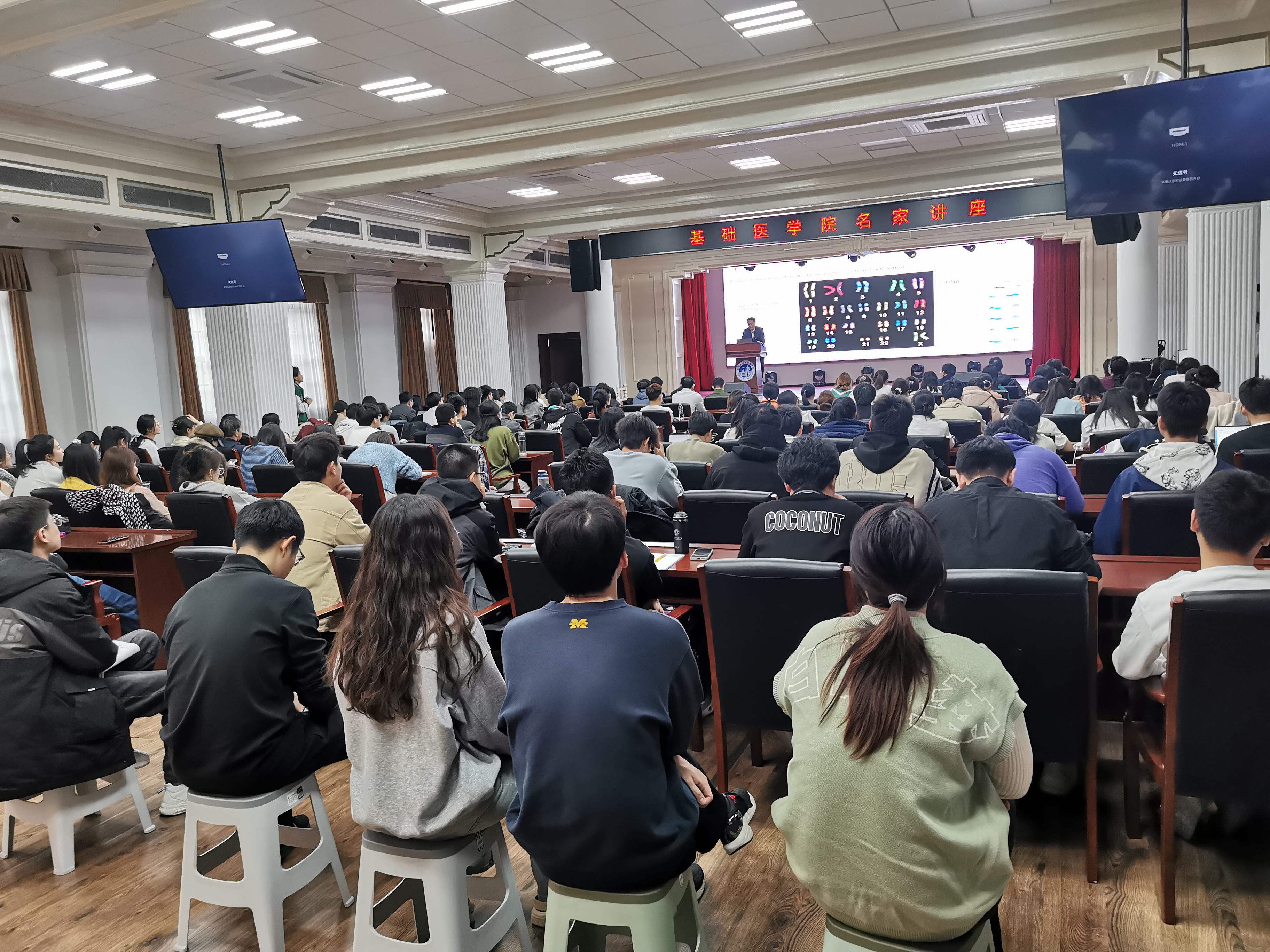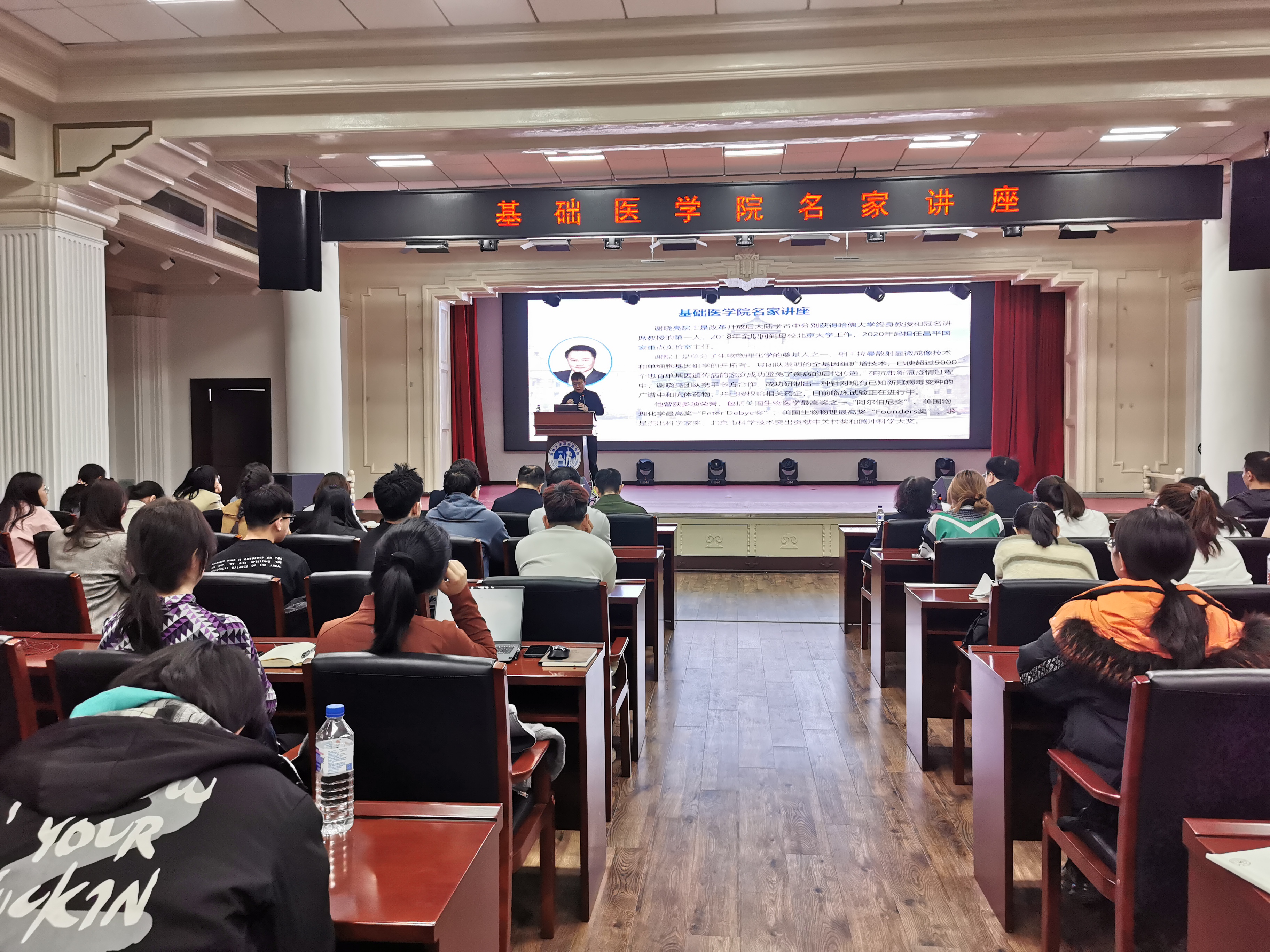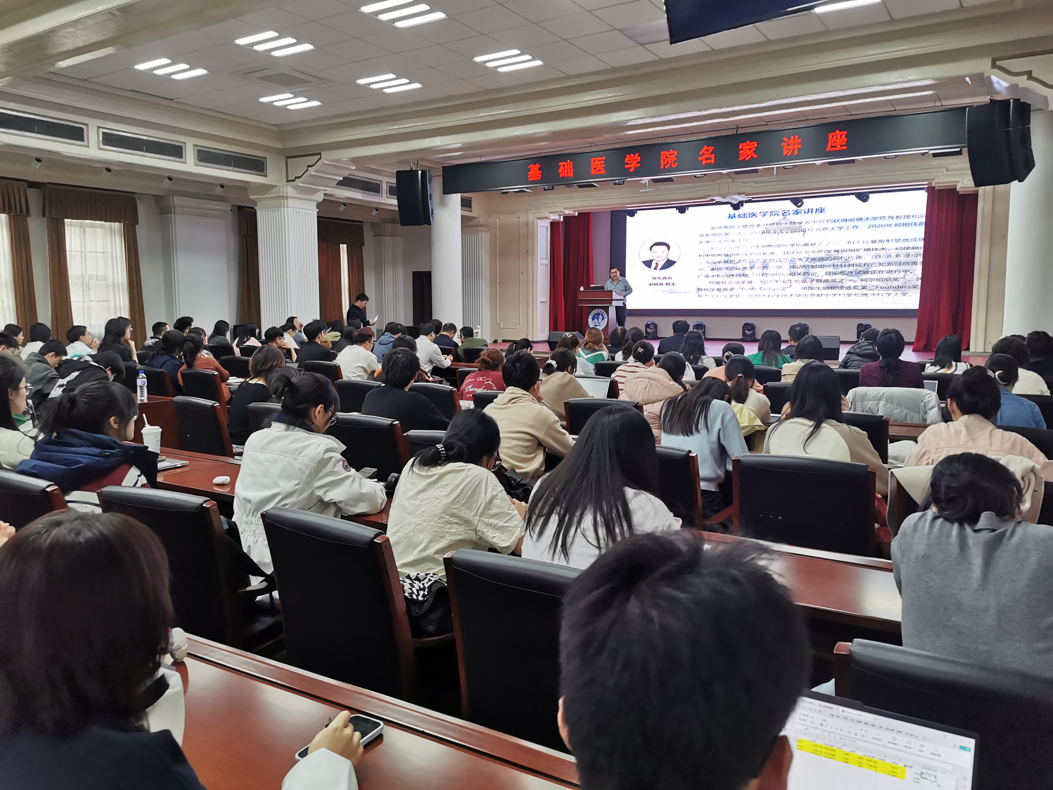 在基础楼二楼多功能厅隆重举办名家讲座,特邀中国科学院院士、昌平实验室主任、国际著名生物化学家谢晓亮教授担任主讲嘉宾。讲座以“人类基因组20年两轮技术革命引发的医学变革”为主题,吸引了学院师生近300人参与,现场气氛热烈。