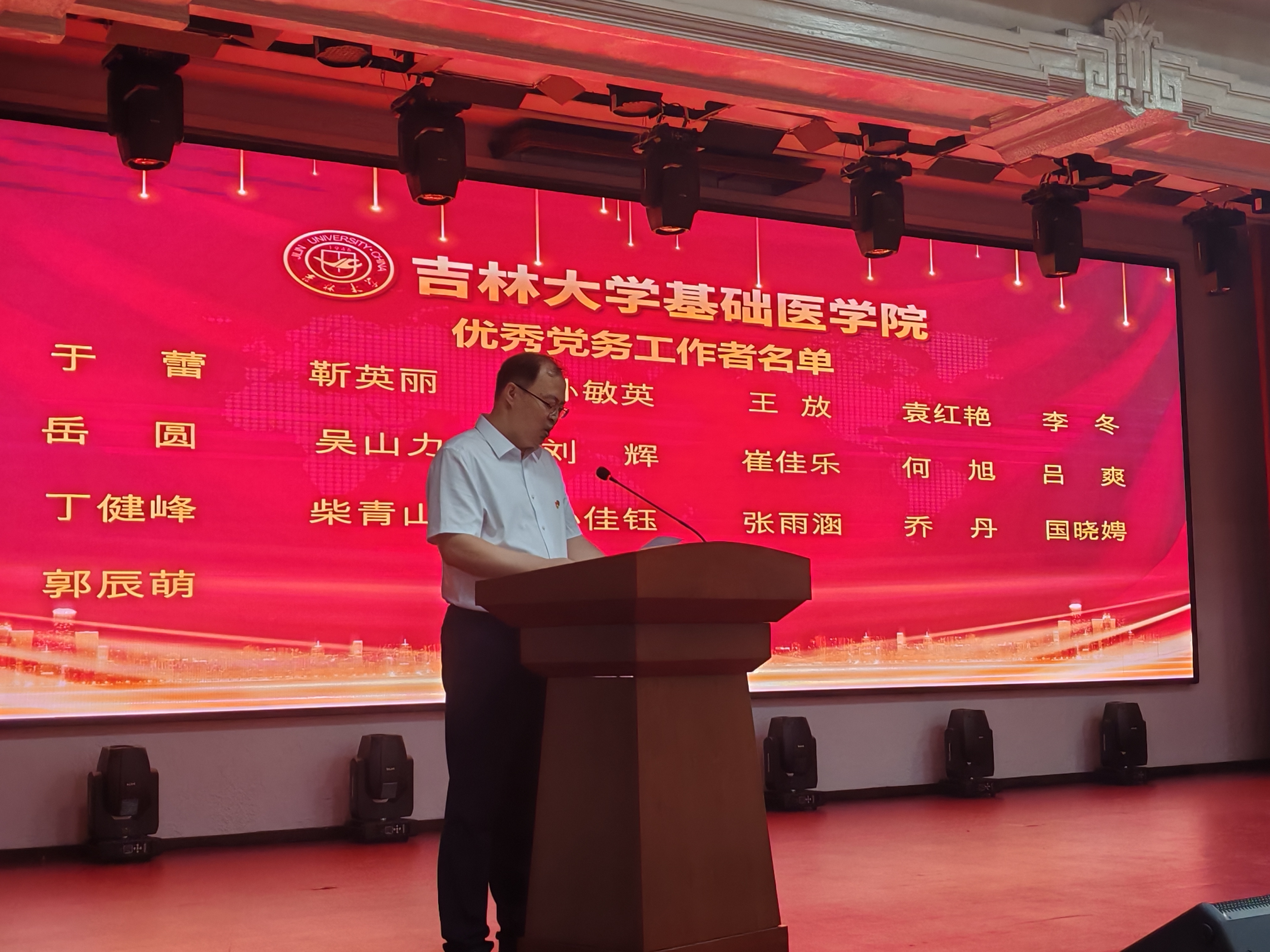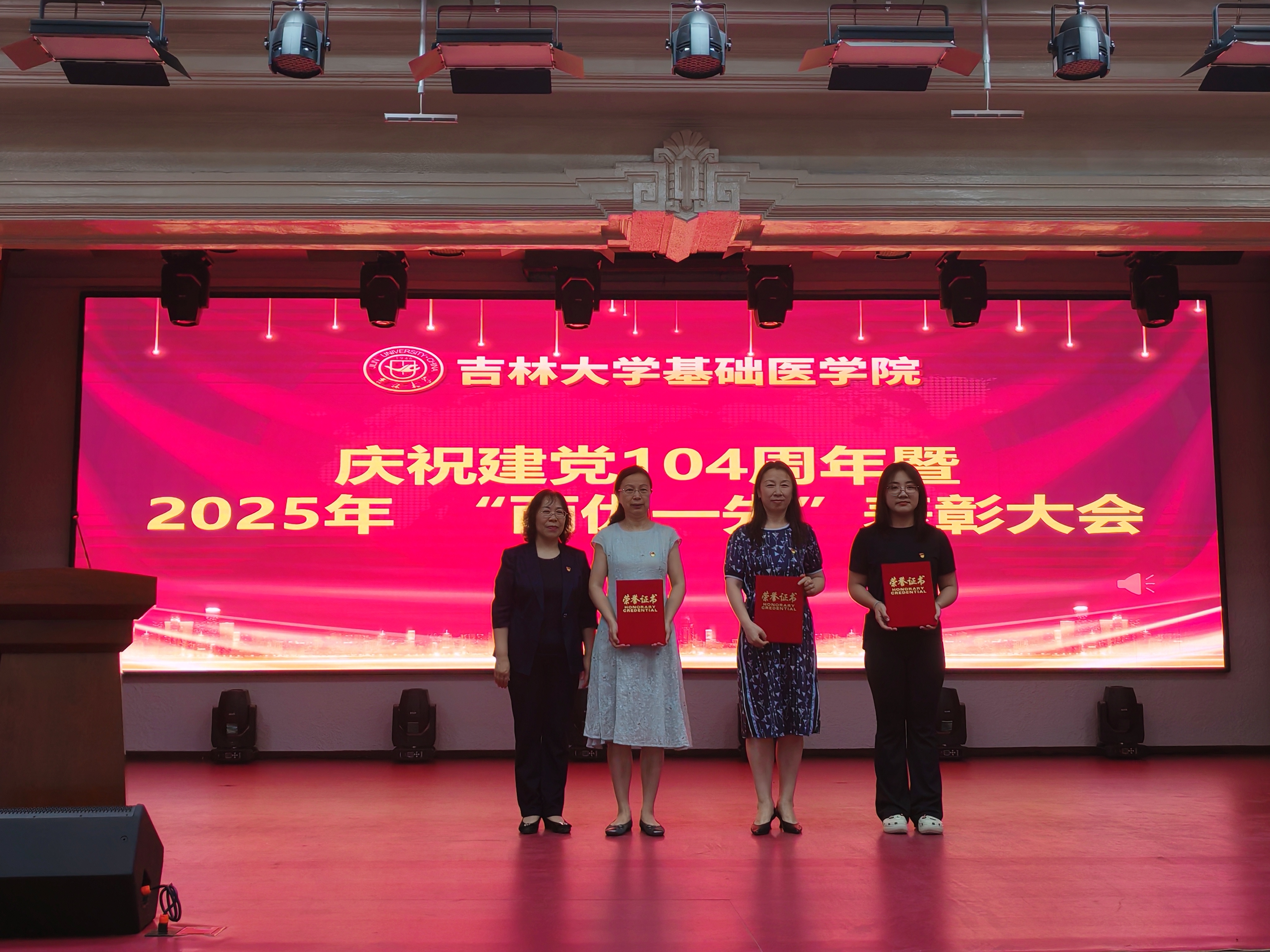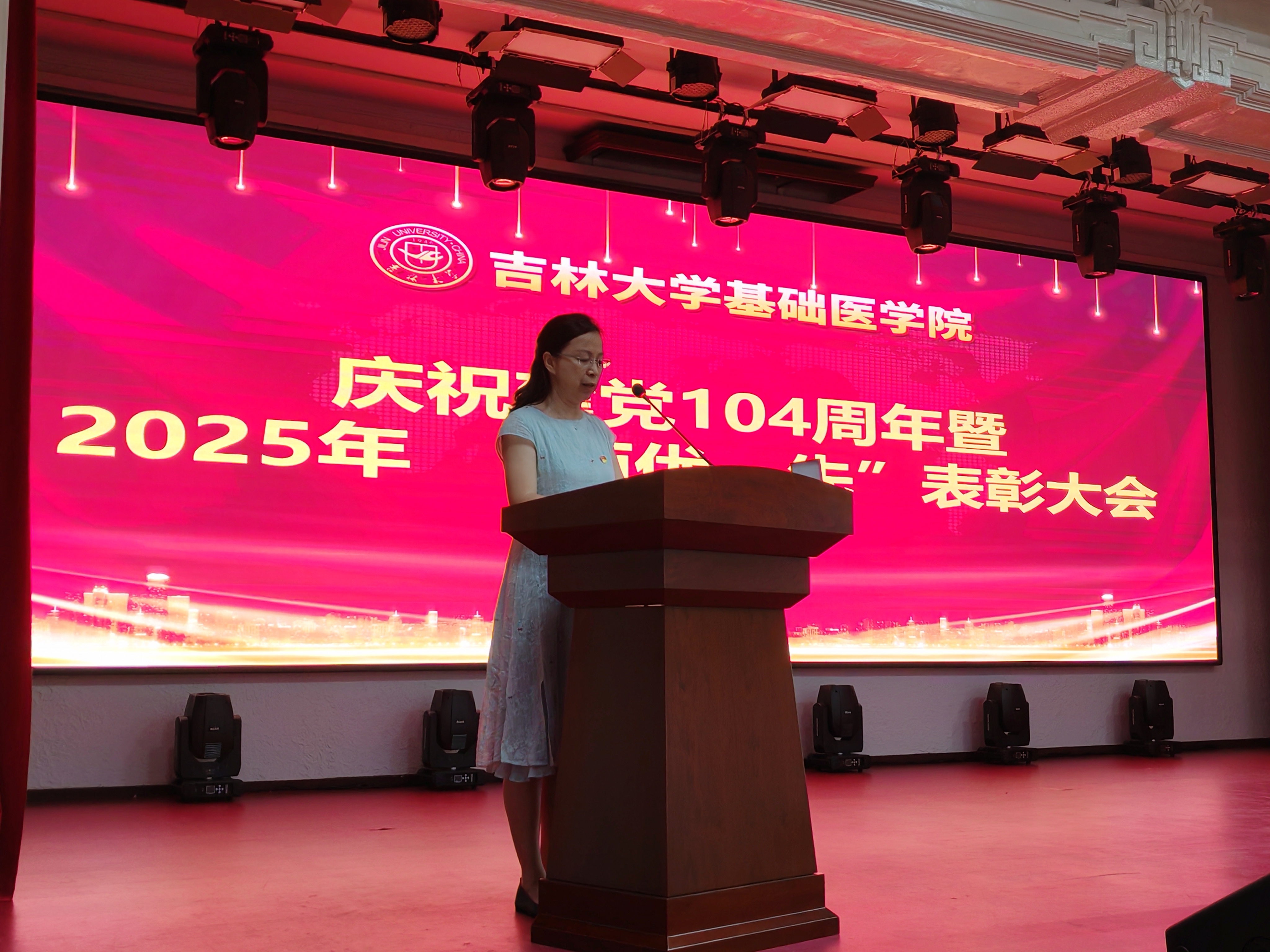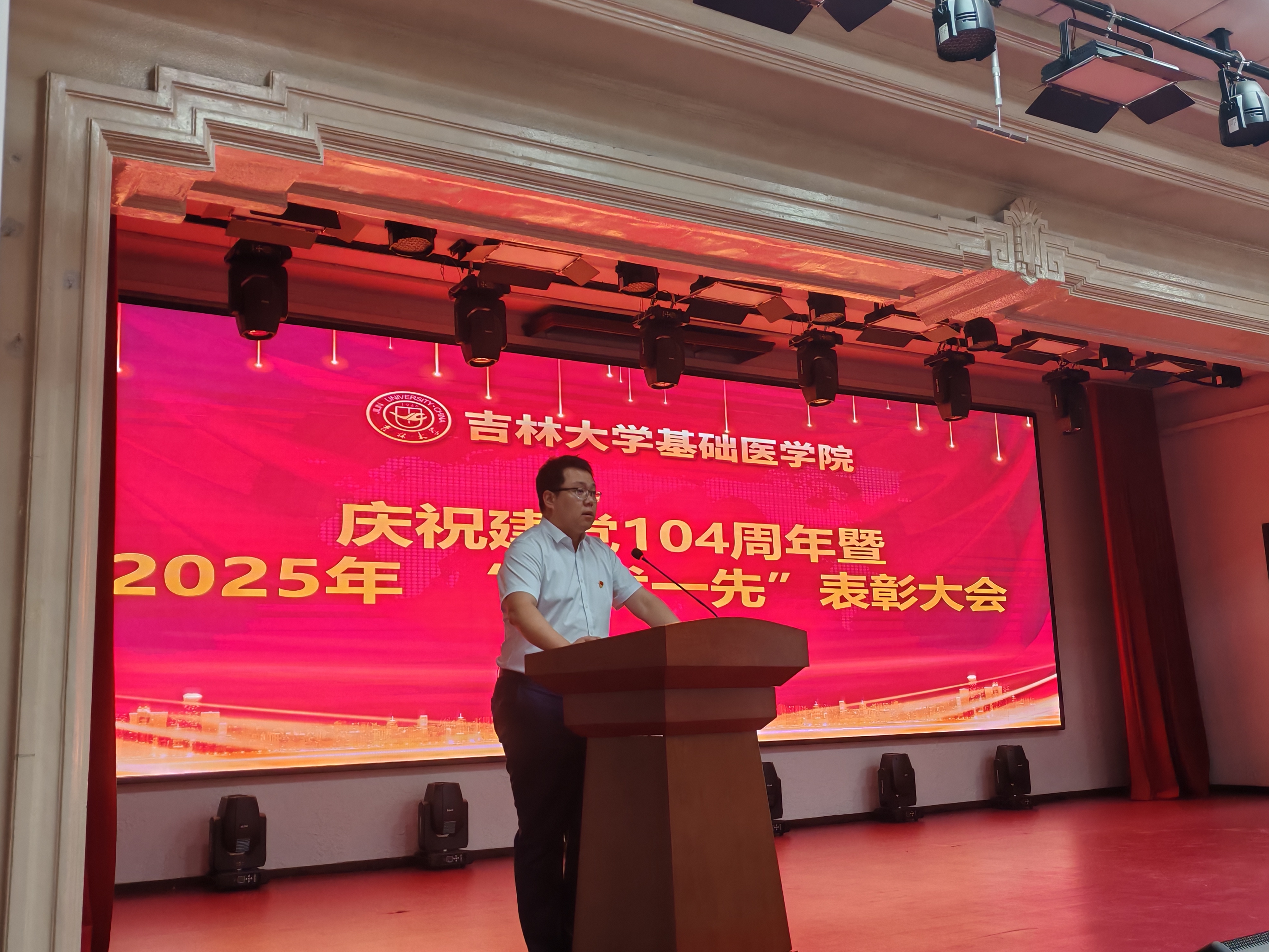 在二楼报告厅举行了庆祝建党104周年暨“两优一先”表彰大会。学校党建联络员屈英和出席会议,学院领导班子成员、全体党员参加会议。会议由学院党委副书记、纪委书记李东洋主持。