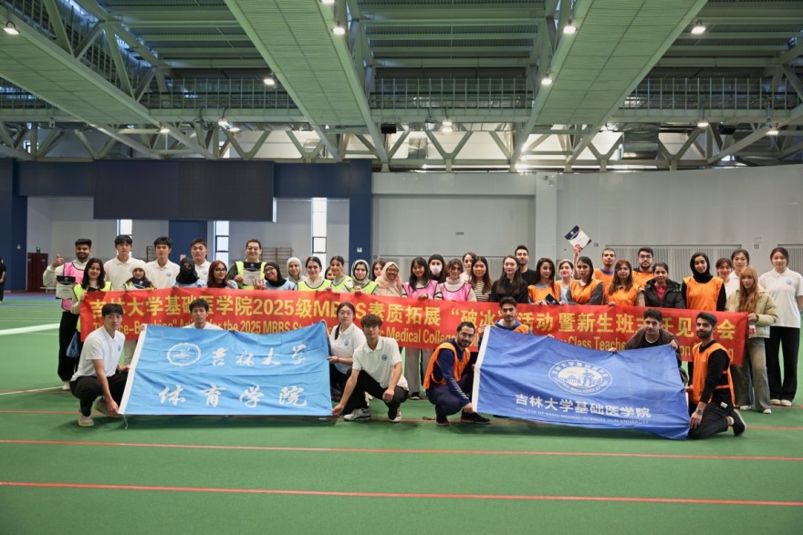 留学生辅导员刘末、留学生办公室全体工作人员、体育学院素质拓展思政教育社团成员以及2025级MBBS来华留学生参加活动。