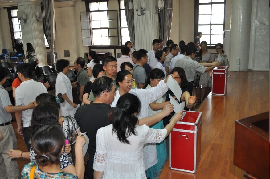 在二楼多功能报告厅召开学期工作总结及学术委员会换届选举会议,全院高级(正、副高)专业技术职务人员参加会议。会议由院长孙连坤主持,党委书记孙赵华等班子全体成员出席大会。