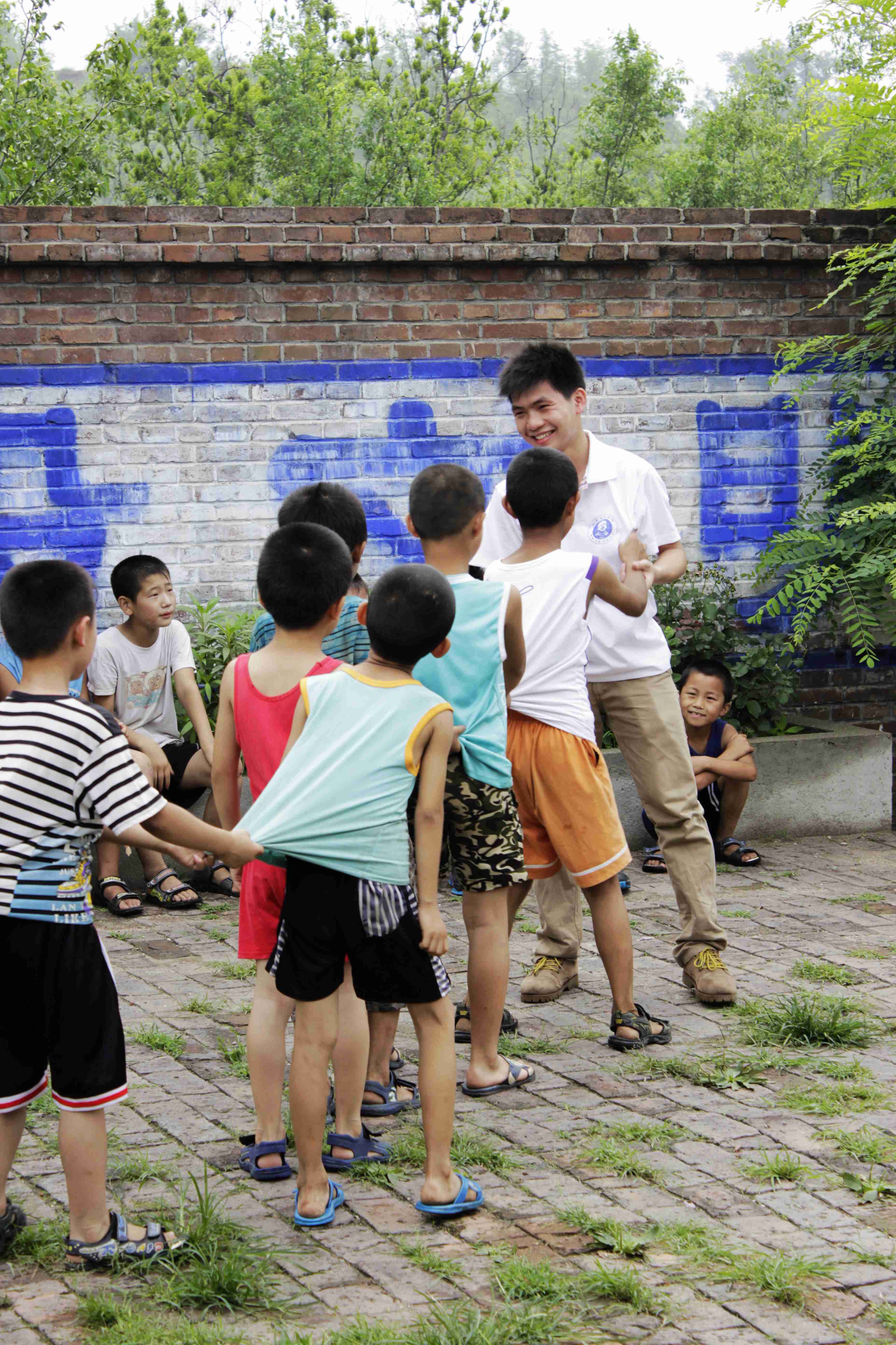 这里的孩子丝毫没有城里孩子的娇气,有个叫甄丹妮的女孩子,不小心摔倒了,腿上破了好大的一块儿,她一点都没有哭闹,而是坚强地从地上爬起来,继续玩耍。上午阳光很强烈,队员们很快就汗流浃背,但是,没有一个人在乎,也没有一个人在树荫下乘凉,那种对孩子们的喜爱和关怀,驱使所有队员在烈日下和孩子们又蹦又跳,又跑又闹。这是一片欢乐的海洋,到处都洋溢着白医学子浓浓的对家的眷恋与热爱。