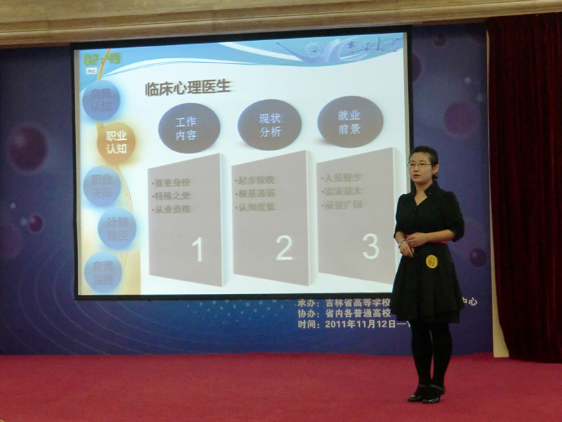 11月12、13日,以“规划自我,服务社会,赢取未来”为主题的吉林省第二届大学生职业生涯规划大赛决赛在吉林省高等学校毕业生就业指导中心隆重举行,白求恩医学院2008级临床医学专业七年制朱翠琳同学代表SexAV 参加了此次决赛,最终获得本次决赛的三等奖。