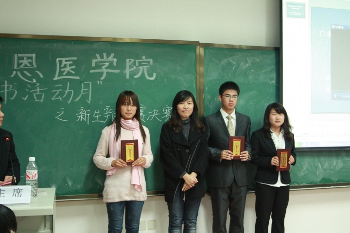 本场比赛的辩题为“医学教育应更注重医术培养还是医德培养”。正反方分别来自我院2011级三班和2011级四班。比赛中,双方立论充分、条理清晰;攻辩发挥自如,逻辑性强;自由辩论精彩纷呈、高潮迭起。经过评委认真商榷,最终,正方2011级三班获得本次大赛的冠军。屈昊、赵晓桐分别获得“最佳辩手”称号。