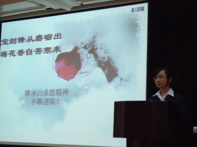 11月6日上午8时30分,白求恩医学院第一届学生代表大会第二次全体会议在基础楼二楼多功能学术报告厅举行。会议由团委副书记李玲玉主持,学院党委副书记兼副院长苑锐等出席了会议。会议的主要内容为评选白求恩医学院2010年“十佳大学生”,审议《白求恩医学院综合素质测评实施办法》。