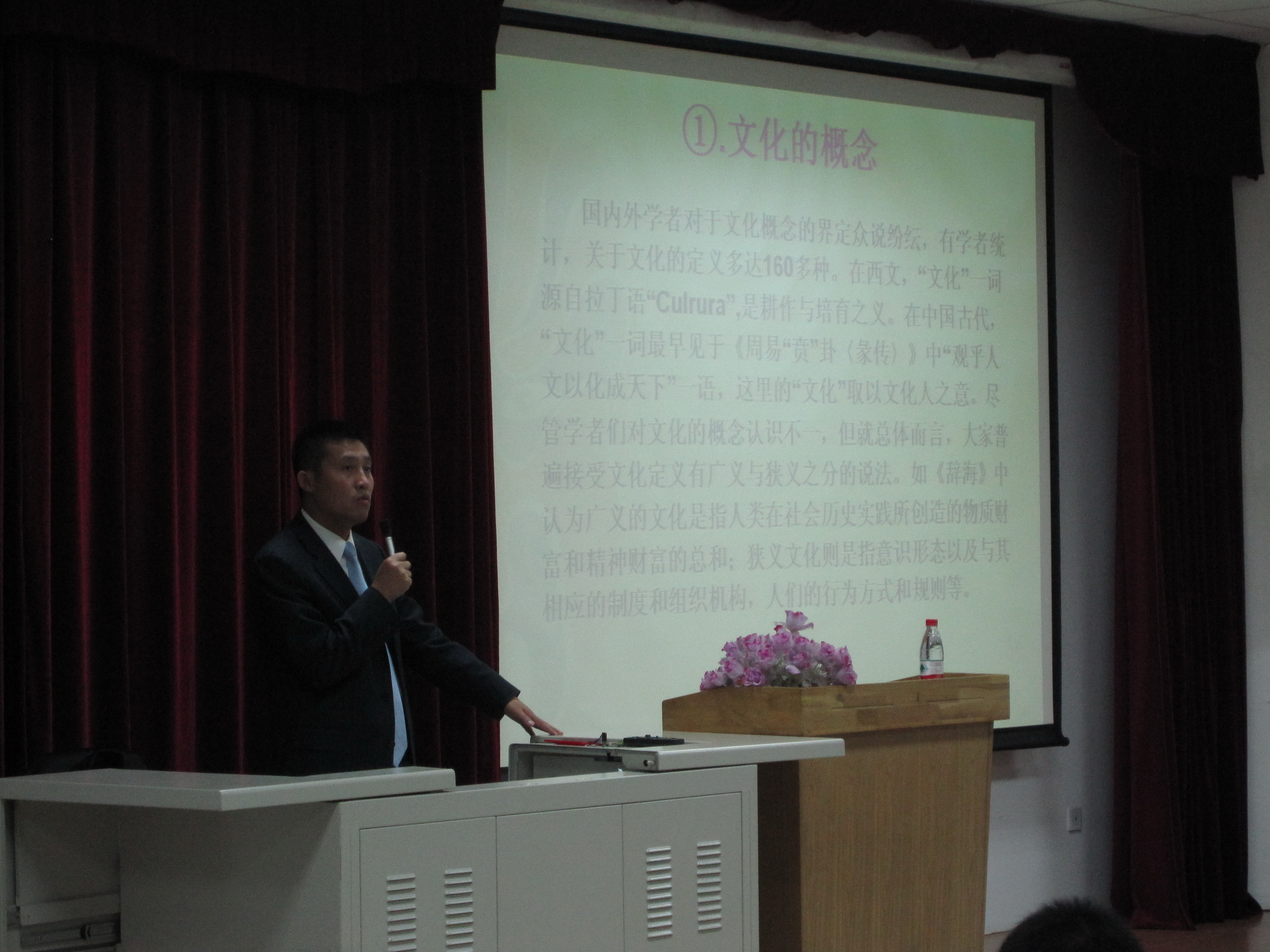 副书记兼副院长王飞首先从“卓越医师教育培养计划”入题,从儒家、道家等中国传统文化为大家阐明了文化是一种风气、一种品位、一种习惯,鼓励大家能够养成“各美其美,美人之美,美美与共,天下大同”的文化自觉性。随后,他从医院文化兴起的背景﹑医院文化的发展历程两方面讲述了医学文化的相关知识,他强调医学生接受医院文化熏陶与培养的重要性,并以实际案例向同学们阐明了人文精神与人文素质对于医务工作者的重要意义,告诫同学们应该学会尊重生命、敬畏生命、关爱生命。他旁引博证,以“遵从行医之道,恪守济世之义”、“生命之托,重于泰山”等医院文化的核心激励同学们把医学当做一种使命而非职业,树立大医情怀的理念。