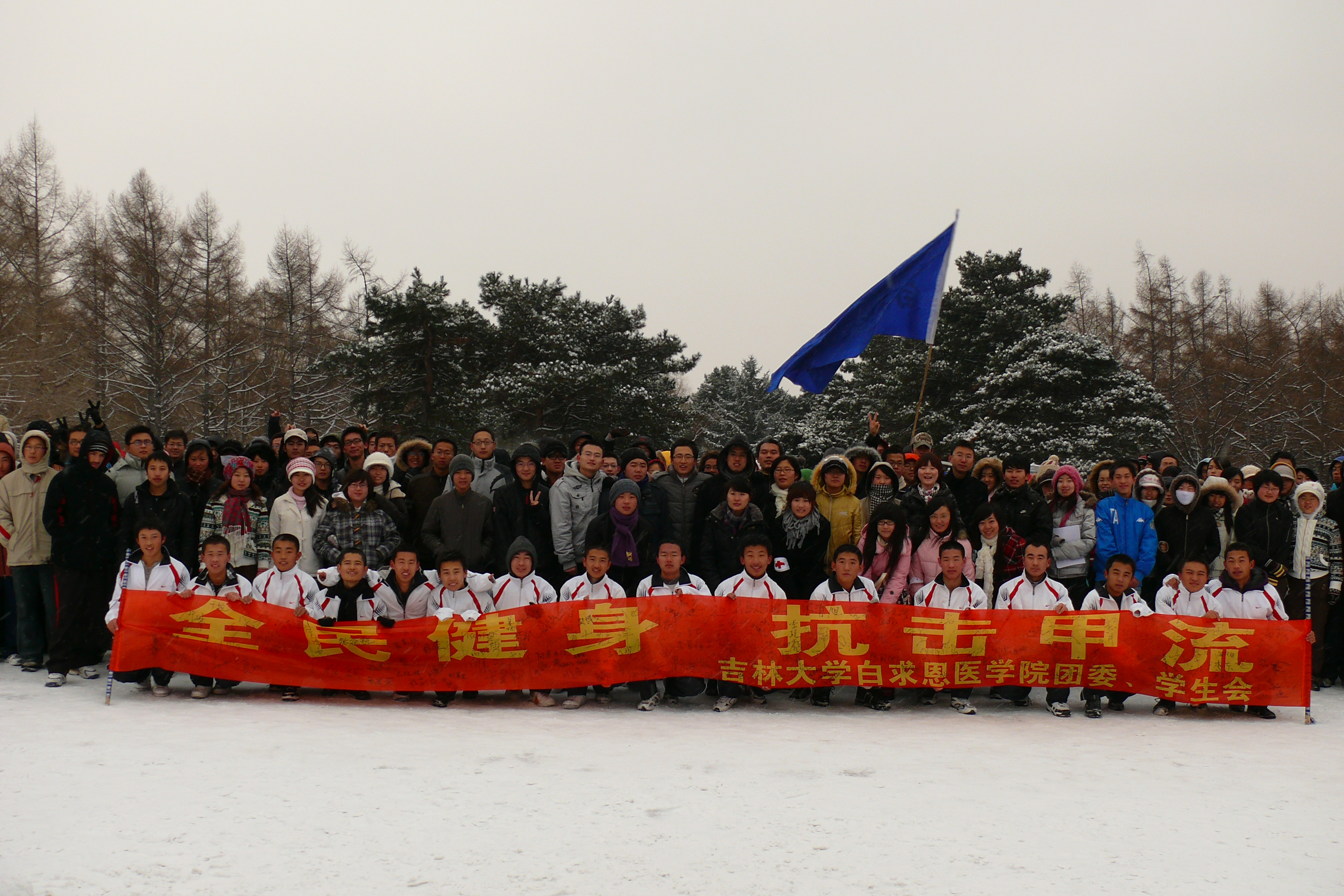 14日清晨7点,“全民健身,抗击甲流”公益长跑活动在南湖公园展开。我院全体学生党员、院团委学生会全体学生干部及08、09级的学生代表有组织的从新民校区步行来到南湖公园,我院学生会主席赵志媛以及团委组织部部长杜心静进行了跑前动员,团委书记田峰老师打响了此次公益长跑活动的发令枪。虽然清晨寒风刺骨,还飘着小雪,但同学们在活动中表现出了高度的热情。大家纷纷表示,作为医学生,白求恩的后继者,我们有责任更有义务在疫情肆虐之时发挥我们的先锋模范带头作用,身体力行,向世人传达甲流可防可治不可怕的思想,引领“全民健身 抗击甲流”的时代潮流。