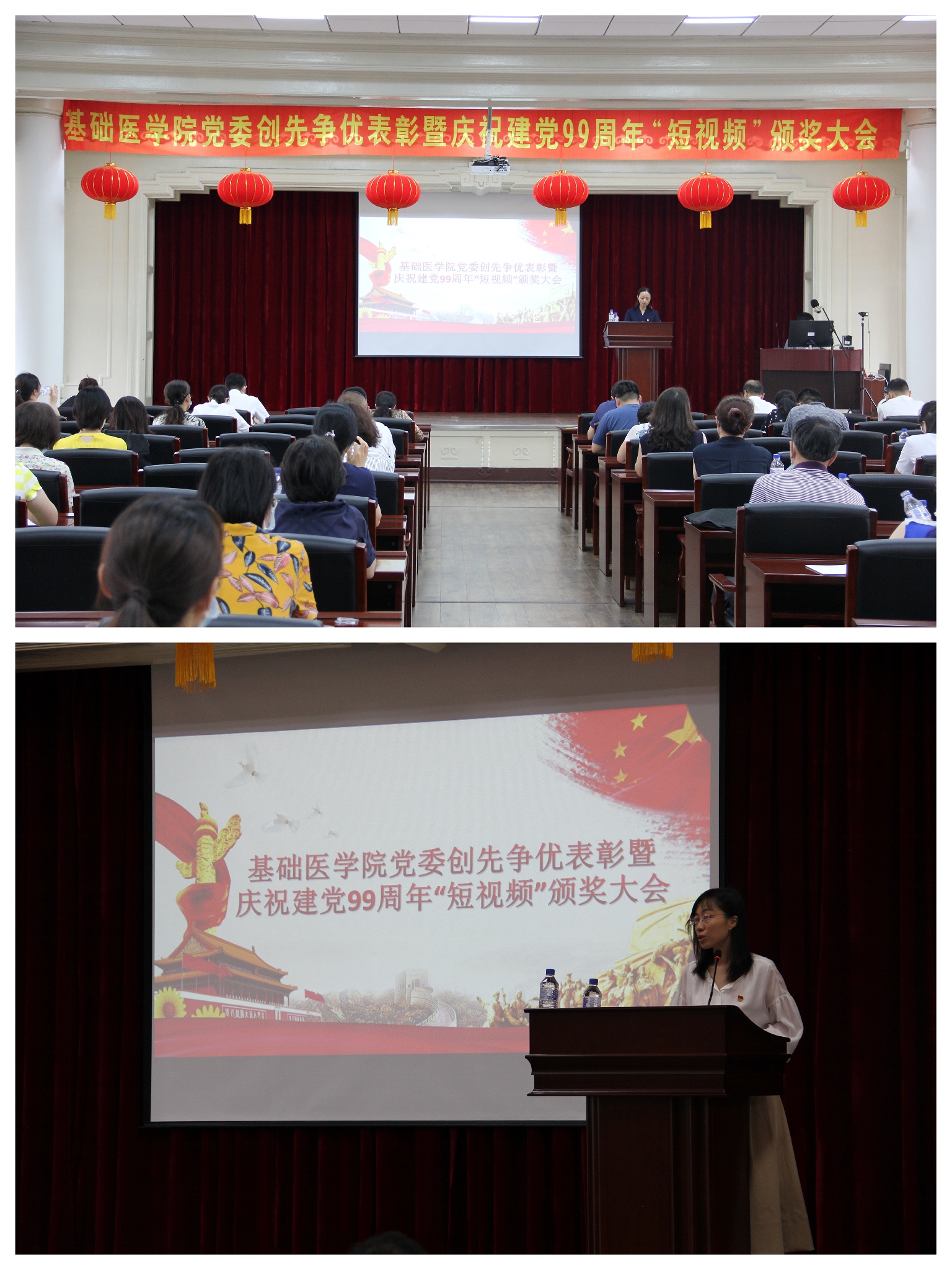 党委举办了创先争优表彰暨庆祝建党99周年“短视频”颁奖大会。学院全体教职工党员、民主党派代表,并邀请民主党派代表、非党员学系(教研室、中心)主任参加了大会。会议由学院院长孙连坤主持。