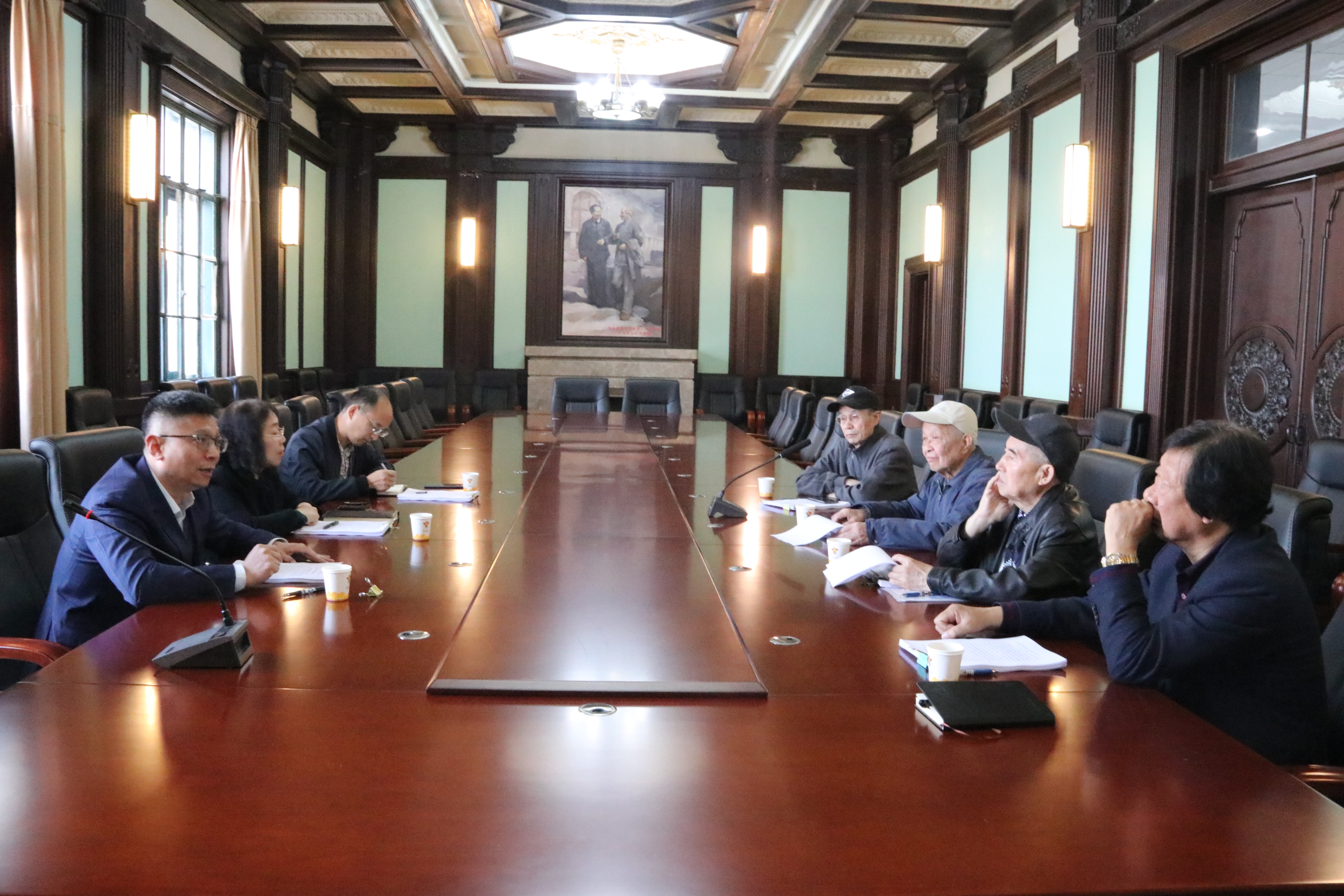 院史内容。期间,老领导们对编撰学院史工作给与充分肯定和高度评价,同时也指出部分与修正意见、建议。李玉林校长指出:应从党史学习角度完善院史编撰,并进一步挖掘老一代医学家、教育家、科学家和他们的感人事迹,更好的继承和弘扬白求恩精神;吴家祥校长指出:编撰工作既要联系实际,又要尊重历史,不能丢弃七十年来建立的奋斗精神,同时也表明梳理建校、建院的过程就是学习党史的过程;钟国赣校长指出编撰院史一定要精准写清楚各阶段历史。