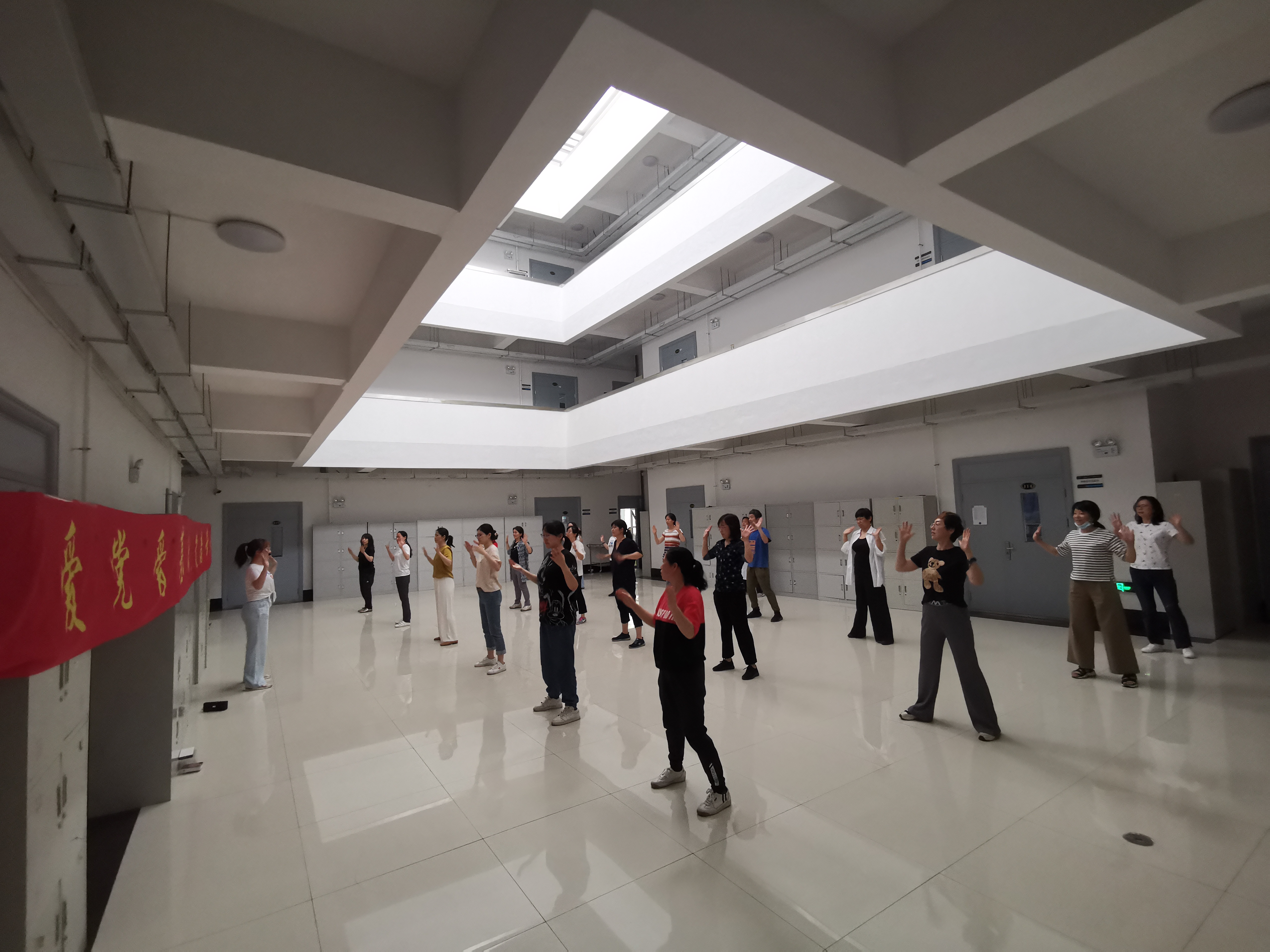 的领导和支持下,学院妇委会、工会以开展党史学习教育为契机,以打造“坚强阵地”营造“温暖之家”为切入点,努力形成“一家一品一特色”的工作格局,持续开展“爱党爱基础 健康常相伴”主题运动活动,每周利用中午时间在基础楼院内及大厅开展学跳健康运动操、燃脂爆汗操、拉伸运动操等体育活动,旨在强健师生体魄,抒写基础运动乐章。近一个月来,通过循序渐进的健康操运动,健身动作从易到难,从简到繁,参与活动的师生们进一步认识到全面锻炼身体的重要性,身体均衡发展和健康水平逐步提升。