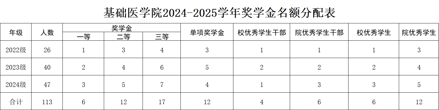 一、2024-2025学年奖学金、优秀学生和优秀学生干部评选各年级分配名额