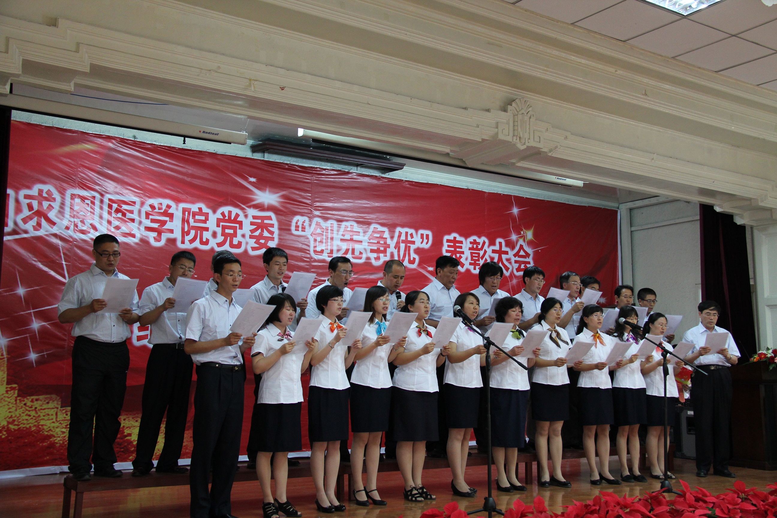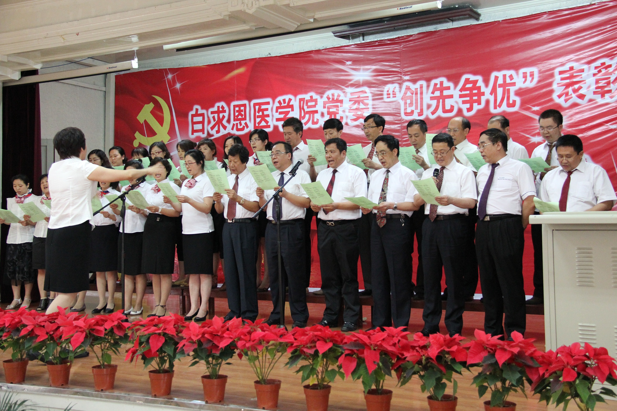 “创先争优”表彰大会由白求恩医学院党委书记屈英和主持,大会在庄严的国际歌中拉开帷幕。首先,屈英和介绍了白求恩医学院“创先争优”活动的开展情况,学院党委委员、常务副院长孙连坤宣读了《关于表彰2008-2011年度“创先争优”活动先进党支部、优秀共产党员、优秀党务工作者的决定》,陈权、兰恒斌、于传波、申桂香、聂宏凯、董汉良分别为获奖代表颁奖。教工第七党支部书记夏映红、教工党员王医术分别代表先进党支部、优秀共产党员发言。