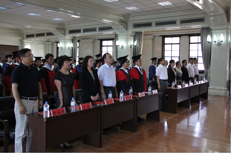 毕业典礼在庄严的国歌中开始。首先,副院长李一雷宣读了获得学位的毕业生名单。在欢快的乐曲中,孙连坤、王丽颖一起为毕业生授予学位、颁发学位证书并合影留念。