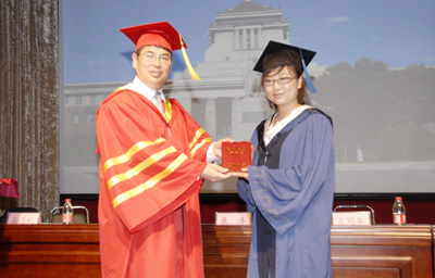 毕业典礼在庄严的国歌中开始,伴随着欢快的进行曲,校长展涛教授为临床医学五年制204名毕业生、临床医学七年制186名毕业生一一授予学位、颁发学位证书,并与每一位同学合影留念。白求恩医学部学位评定分委员会主席、白求恩医学院常务副院长孙连坤教授协助颁发学位证书。