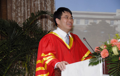 校长展涛教授发表了热情洋溢的讲话。他在讲话中首先对毕业生顺利圆满的完成学业表示衷心的祝贺,对大家在吉大学习生活的过程中为学校发展做出的贡献表示诚挚的谢意。展涛校长还特别表达了对医学毕业生由衷的敬意,他说,选择了医学就选择了一种特殊的挑战,选择医生就选择了一种特殊的责任,中国的医疗卫生事业正处在一个变革的时代,医学毕业生注定要比别人付出更多的艰辛,承担更重的压力,面对更大的挑战。展涛校长还为毕业生们送上了深深的祝福,祝愿我们的毕业生成为民族的栋梁、社会的中坚、吉大的骄傲。