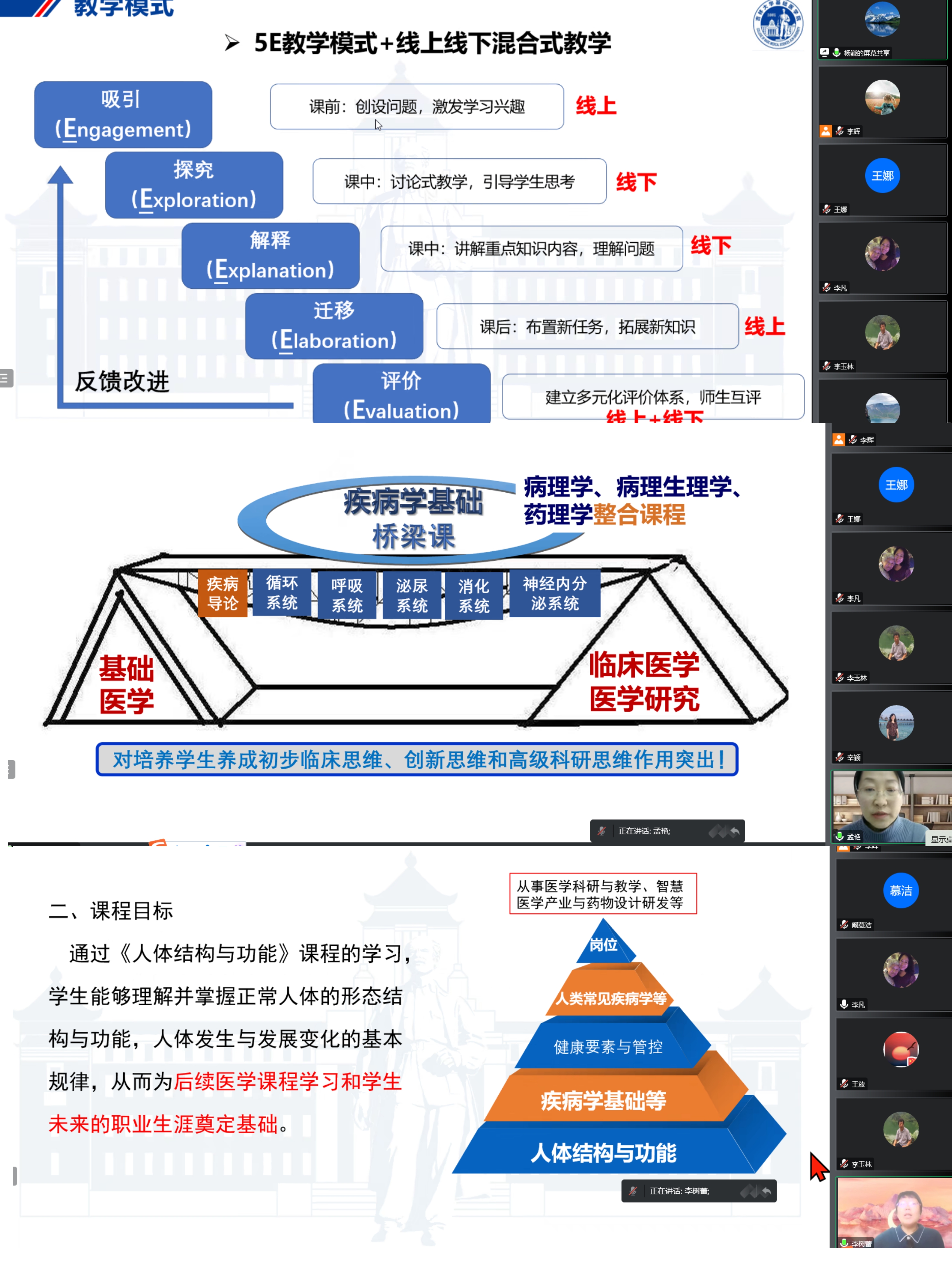 院长孙连坤教授,院长王放教授、王晓荣书记、副院长刘海岩教授、孙巍教授,学院教学委员会主任委员王医术教授以及医学督导专家组李一教授等担任专家组评委,会议由学院教学副院长辛颖教授主持。