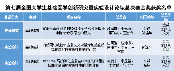 坚持以赛促教,依托高水平科研平台,充分发挥基础医学领域的科研优势,营造学术育人的浓厚氛围,为本科生创新实践活动提供了肥沃的土壤和广阔的空间。学院以大学生创新创业训练计划、基础医学科研训练、本科生科研训练计划、开放性创新实验项目等实践教学活动为抓手,夯实医学生基础理论和实践技能,为创新型医学人才培养打下了坚实基础。