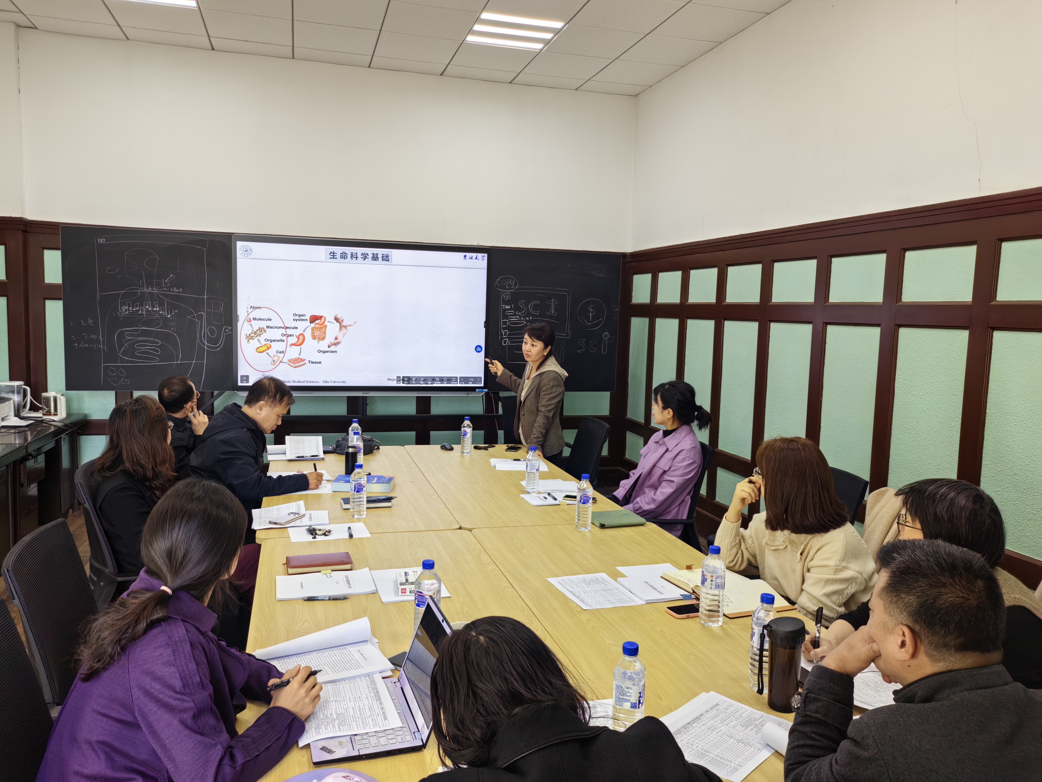 院长孙连坤教授、教学副院长辛颖教授、生物化学教研室主任杨成君教授、生物医学科学学系主任张灵教授、课程团队教师以及教务办公室工作人员参加了此次活动。