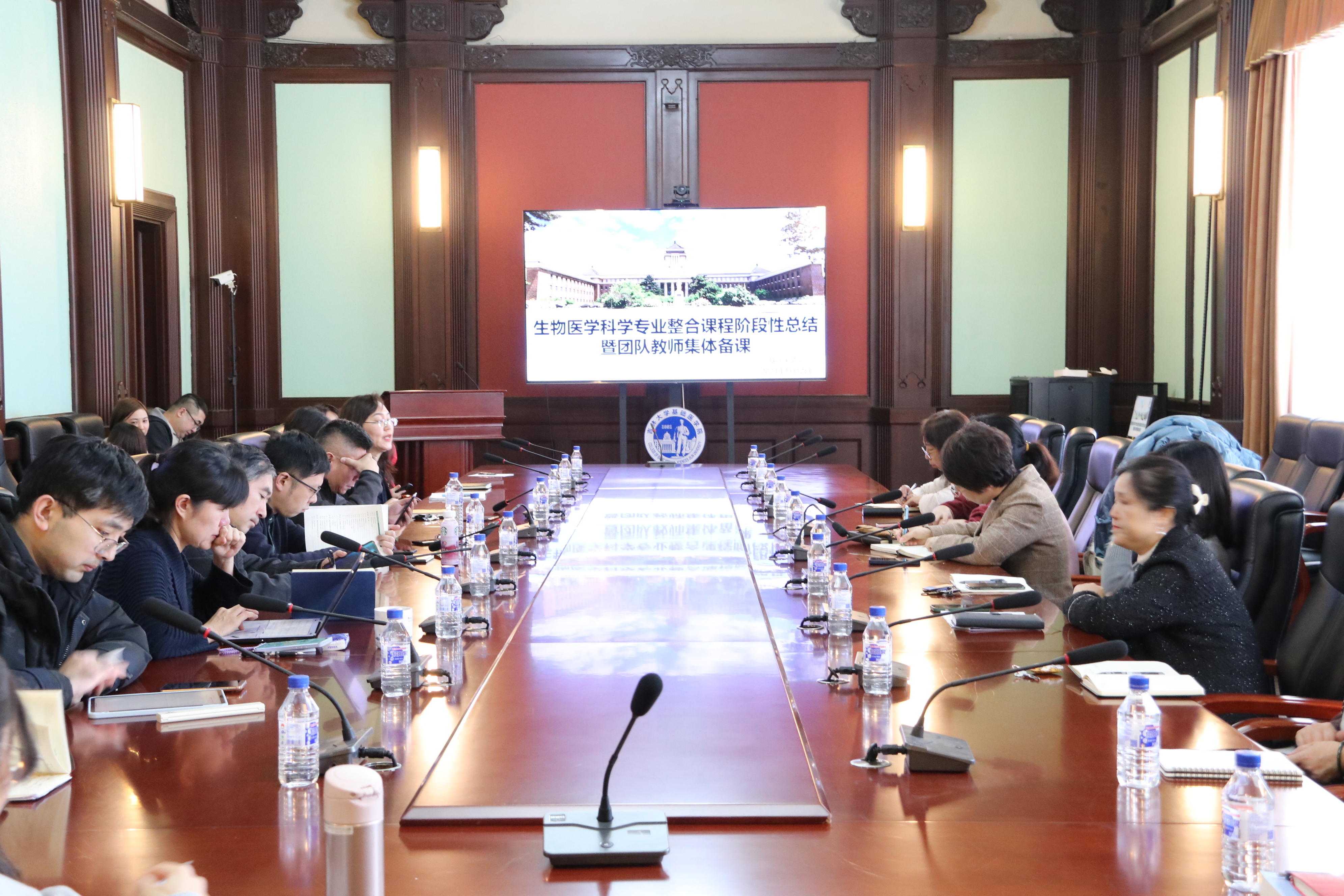 于1月12日下午召开了整合课程阶段性总结暨集体备课活动,院长王放、副院长辛颖、学系主任、整合课程负责人及团队主讲教师、教务办公室工作人员30余人参加了会议,会议由辛颖副院长主持。