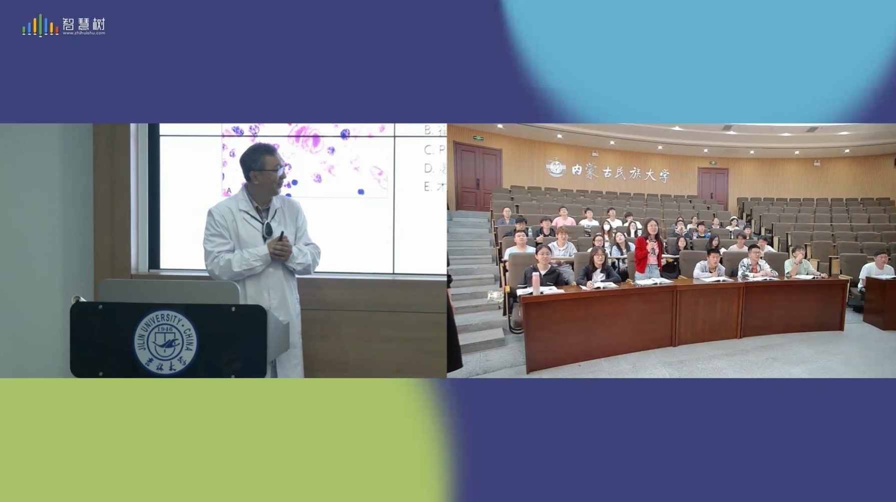 病理学系王悦增副教授主讲,主题为淋巴造血系统疾病,包括淋巴结的良性病变、淋巴组织肿瘤、髓系肿瘤和组织细胞和树突状细胞肿瘤等内容。课堂上,结合临床案例、病理图片、思维导图对典型疾病进行深入剖析,使学生们对淋巴造血系统疾病有了更加全面和深入的认识。与学生积极互动同时,结合随堂练习,帮助同学们及时巩固本次课的学习成果,内蒙古民族大学的同学们积极互动,课堂氛围十分活跃。