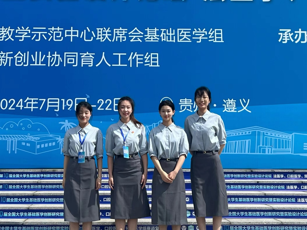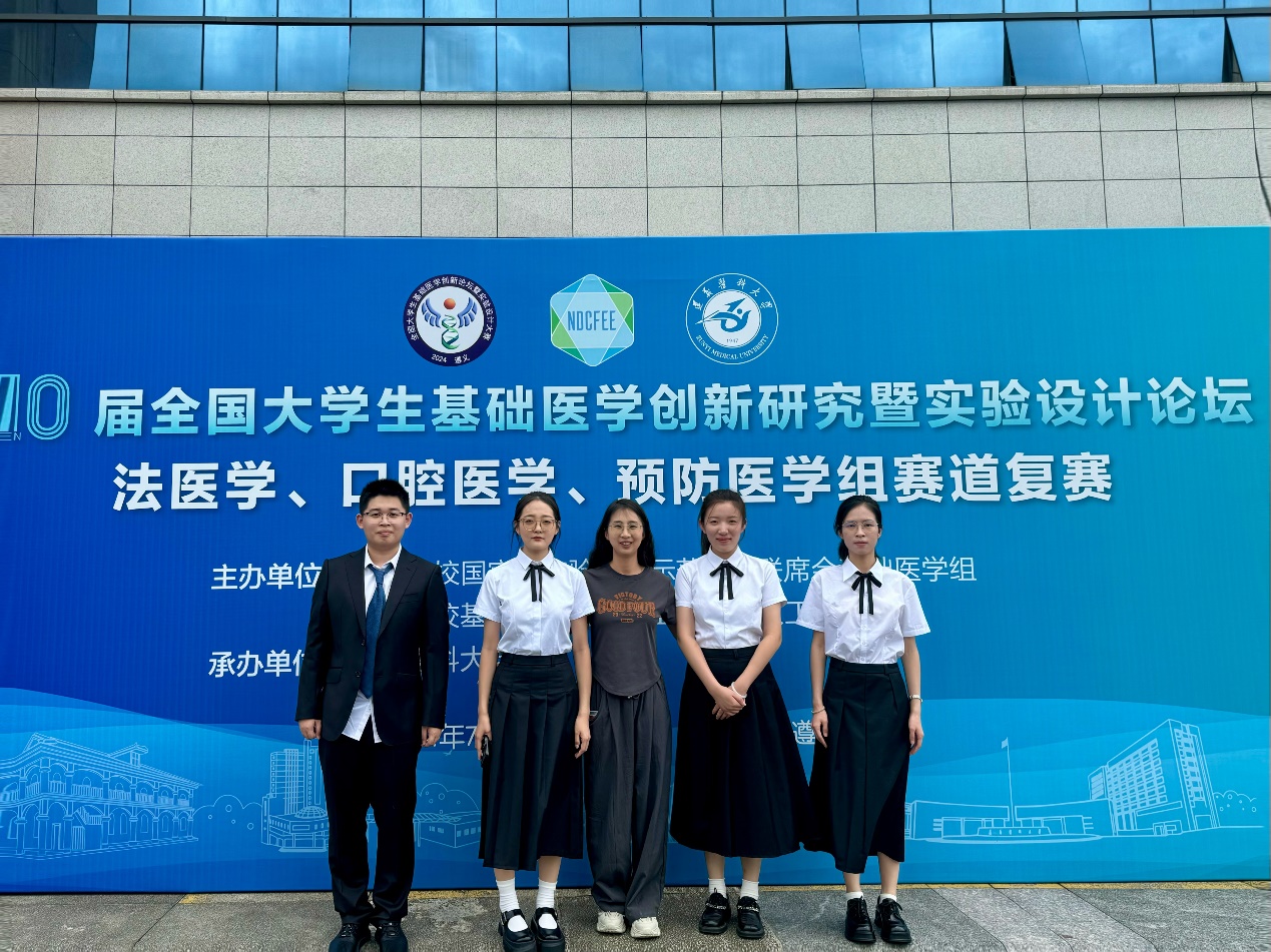 2024年7月19日至22日,由高等学校基础医学创新创业协同育人工作组主办、遵义医科大学承办的第十届全国大学生基础医学创新研究暨实验设计论坛本科院校法医学、口腔医学、预防医学组赛道复赛在遵义医科大学举行。口腔医学组169组、法医学109组、预防医学247组,共计525组队伍参加复赛。我校晋级区赛的6支队伍在激烈的竞争中脱颖而出,共获得一等奖2项,二等奖3项,三等奖1项。