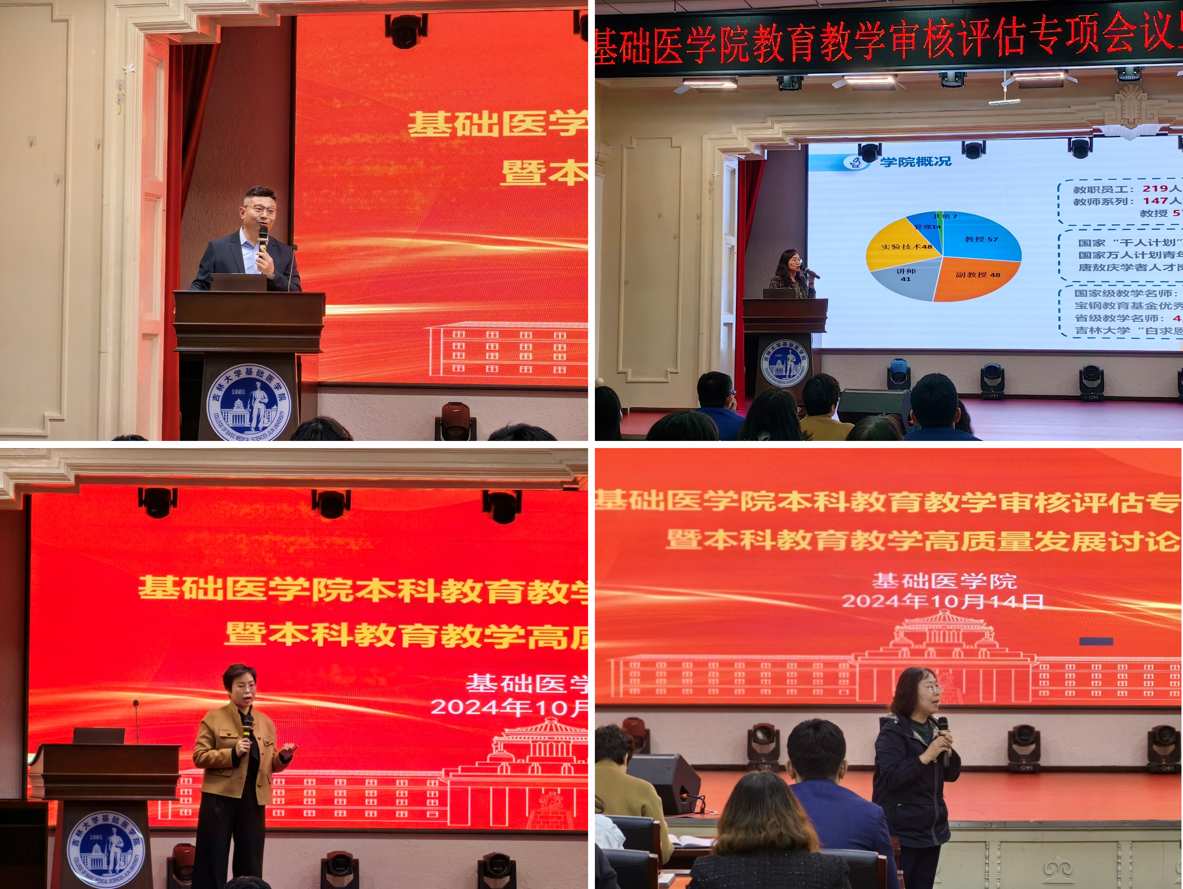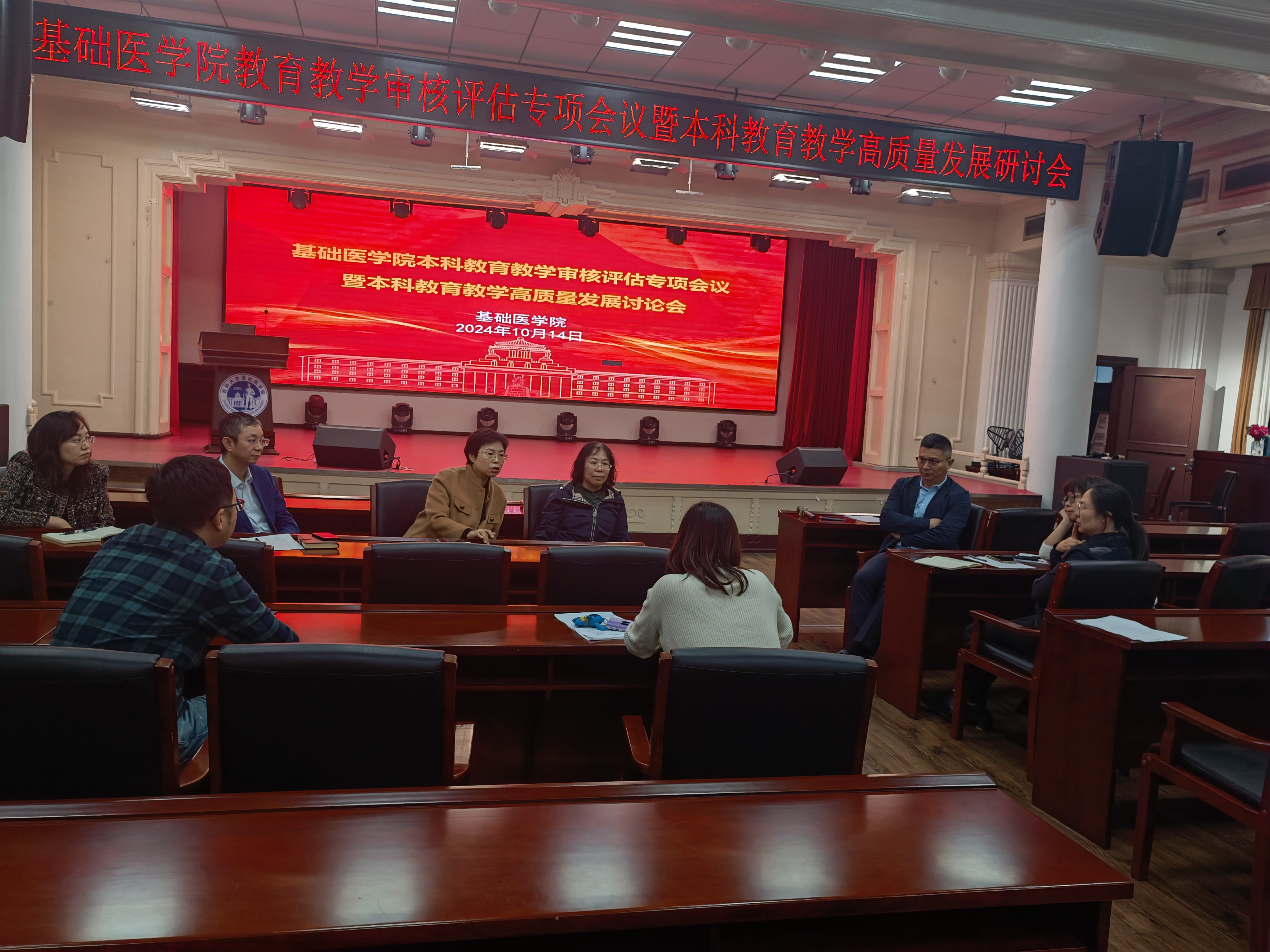 于2024年10月14日下午在基础楼二楼学术报告厅召开本科教育教学审核评估专项会议暨本科教育教学高质量发展研讨会。会议由学院院长王放教授主持,学院党政领导班子、学院教学委员会委员、学院教学督导组、各学系(教研室)主任及教师代表40余人出席此次会议。
